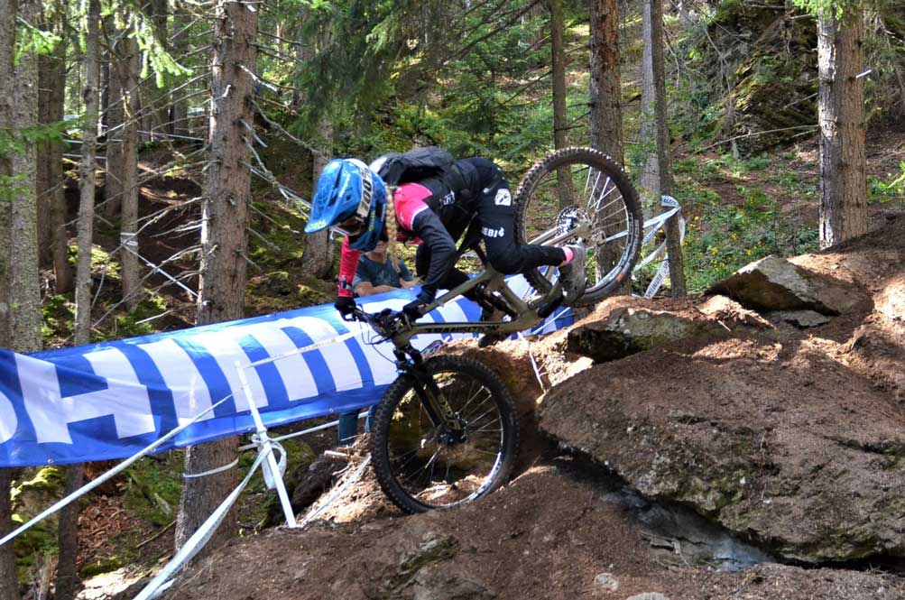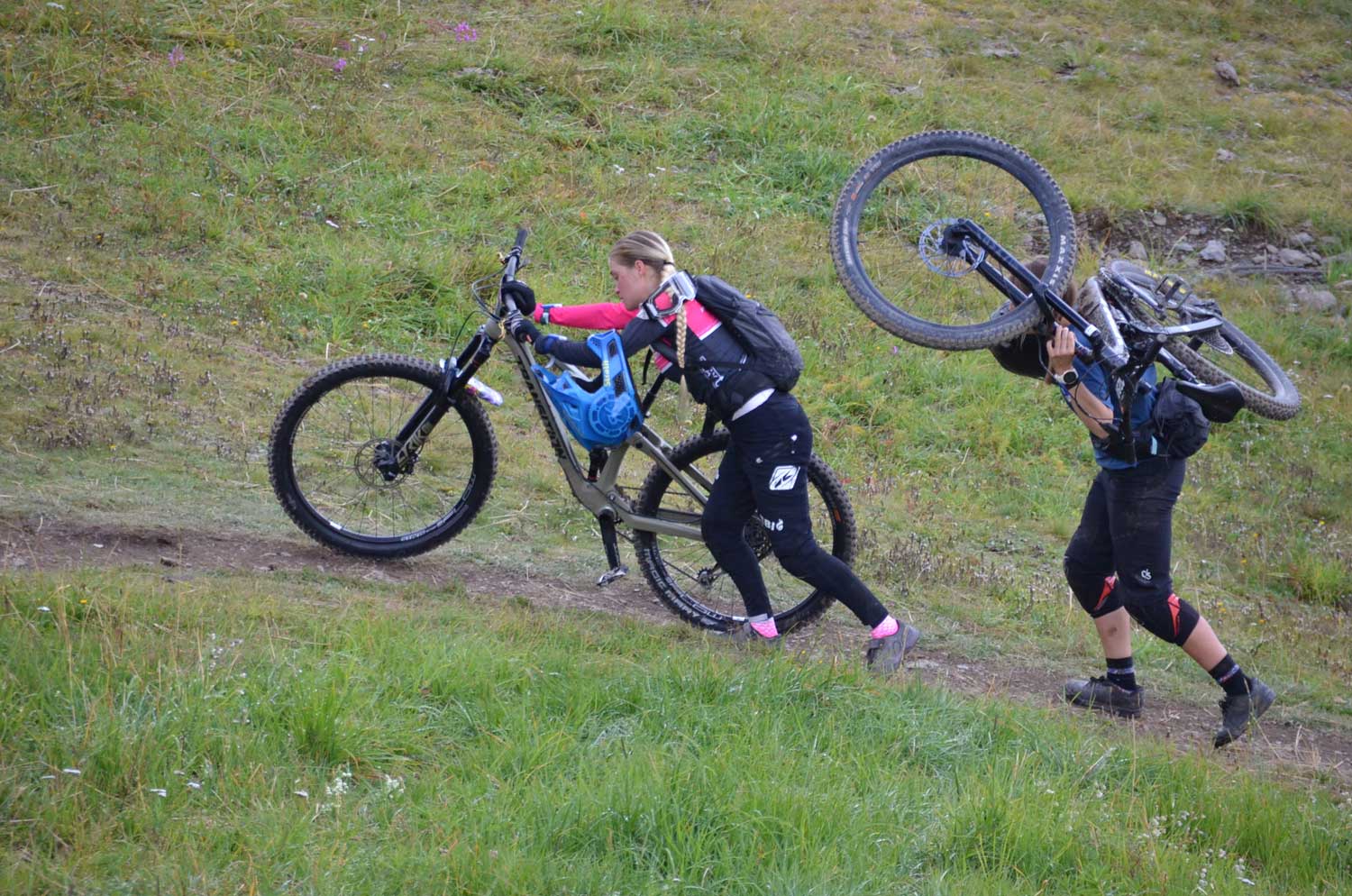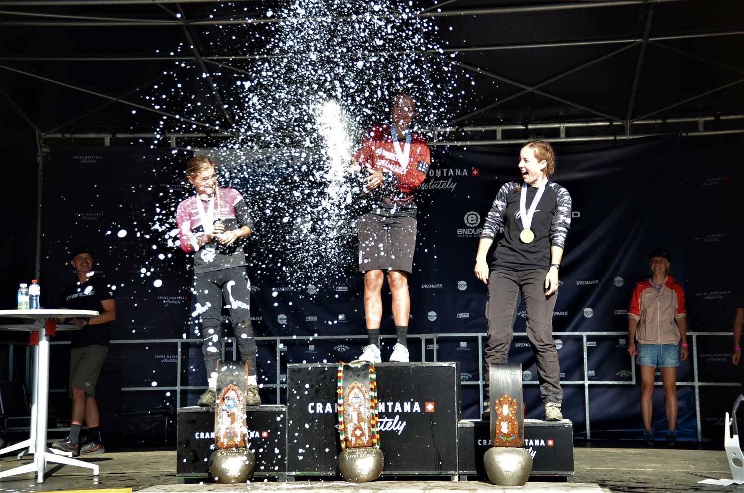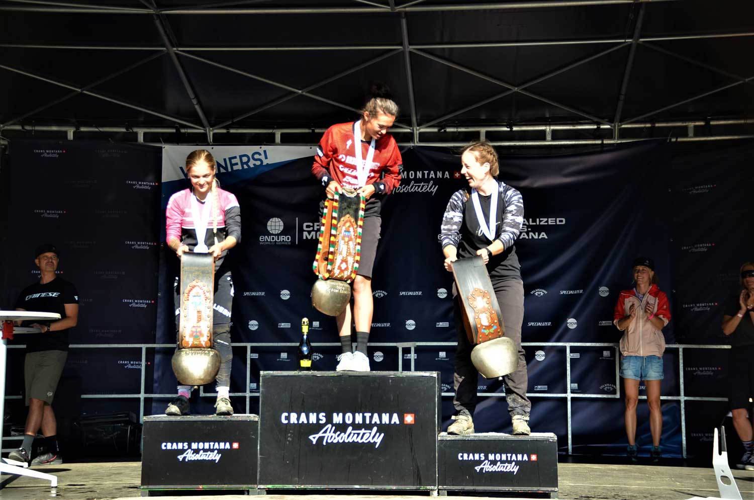 Nun zum Geschehen des Rennens: Ramona startete gut in die erste Stage und lag bereits mit dem dritten Teil-Rang auf dem Podest. Für die zweite Stage mussten die Athleten ihre Bikes hochschieben. Das war ein Krampf. Aufgrund dessen, dass Ramona einer anderen Fahrerin half einen Defekt zu beheben, kam sie sehr knapp zum Start. Aber es reichte zum zeitgerechten Check-In. Nach nur wenig Erholungszeit ging es gleich wieder los. Mit einer guten Fahrt konnte Ramona auf den zweiten Platz vorstossen. Der Abstand zur dritten war mit 6 Sekunden aber sehr knapp. Auf der dritten kurzen Stage, welche vor und nach der Zeitmessung mit viel Pedalarbeit verbunden war, konnte Ramona ihren zweiten Rang nochmals sichern. Nun zur letzten Stage: Ramona war während des ganzen Wettkampfes bisher nie gestürzt. Fast am Ende der Stage und ausgerechnet vor den Augen der Mutter, musste sie zu Boden. Ramona nahm im Gegensatz zum Training eine für 27.5er Räder sehr schwierige Linie. Weil sie einen Moment zögerte und damit nicht genug Flow hatte, fiel sie über den Lenker. Zum Glück rollte sie sich gut ab und konnte nach einigen malen Kopfschütteln noch ins Ziel fahren. Auf die Reihenfolge an der Spitze hatte der Sturz keinen Einfluss mehr. Ramona erreichte an ihrem ersten Einsatz im Rahmen der Enduro World Series als Zweite das Podest. Macht das jetzt noch mehr Hunger nach Enduro-Rennen oder lebt Ramona jetzt weiter ihre Passion in der Disziplin Downhill? Wir werden sehen.