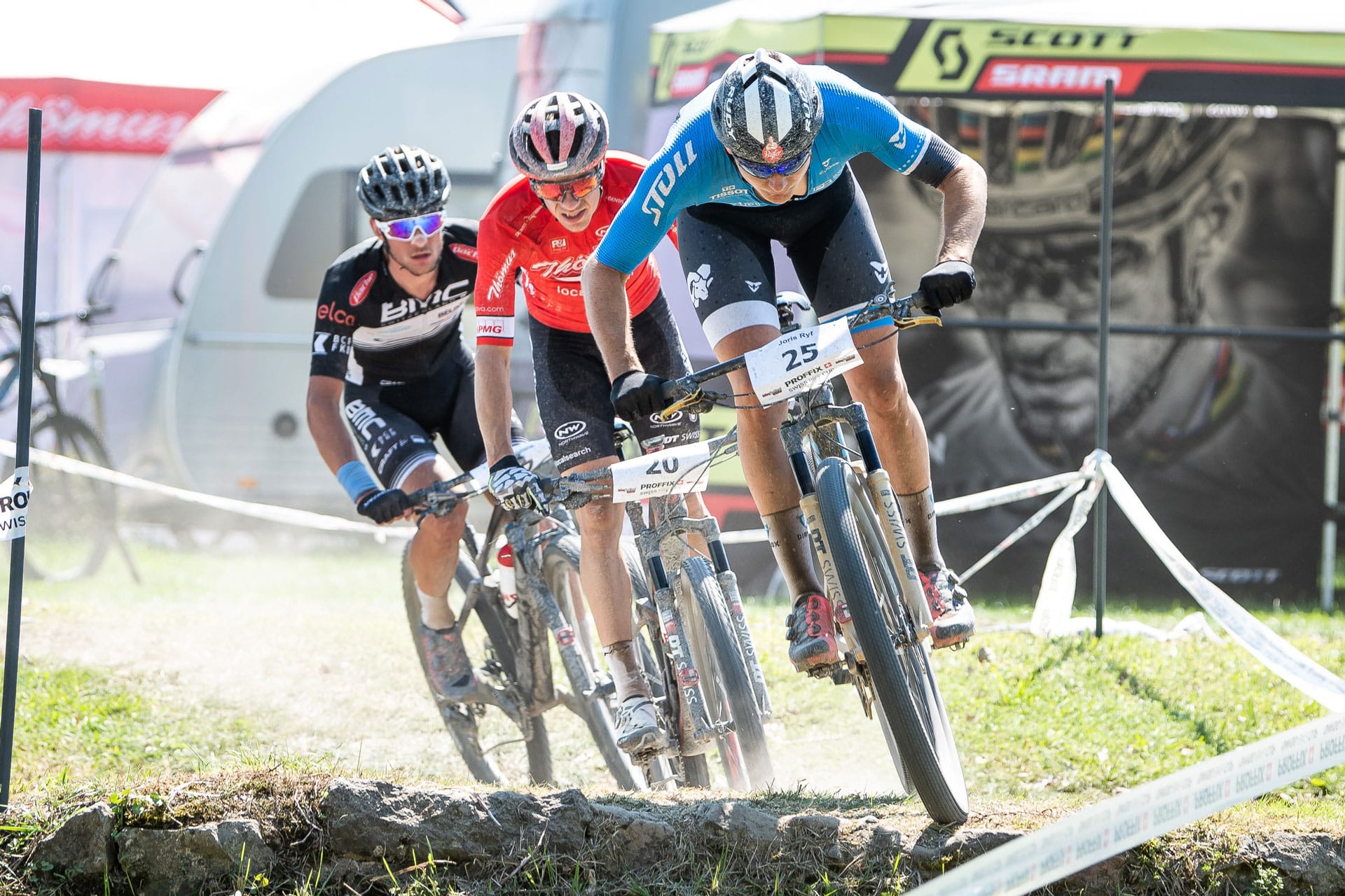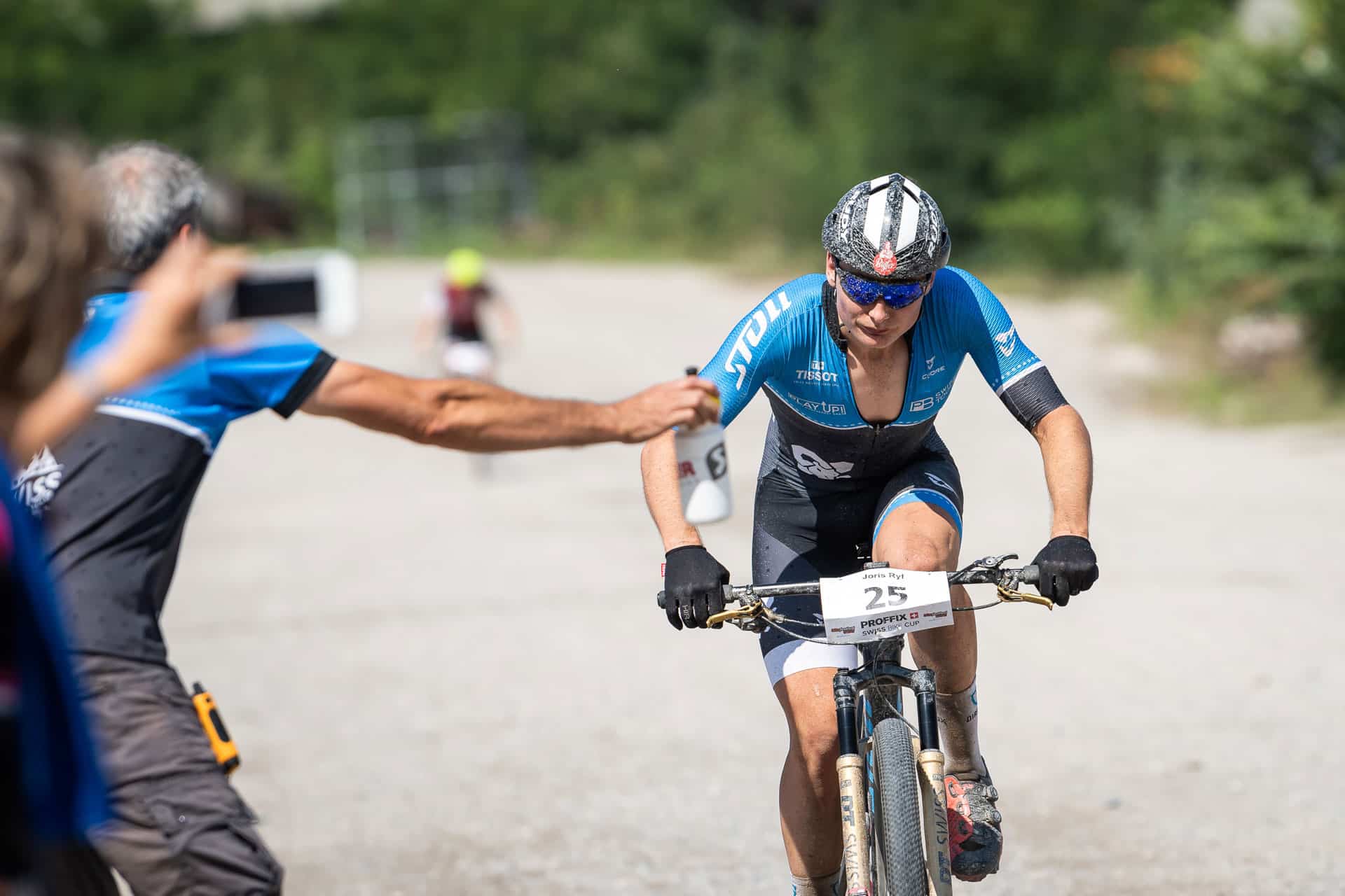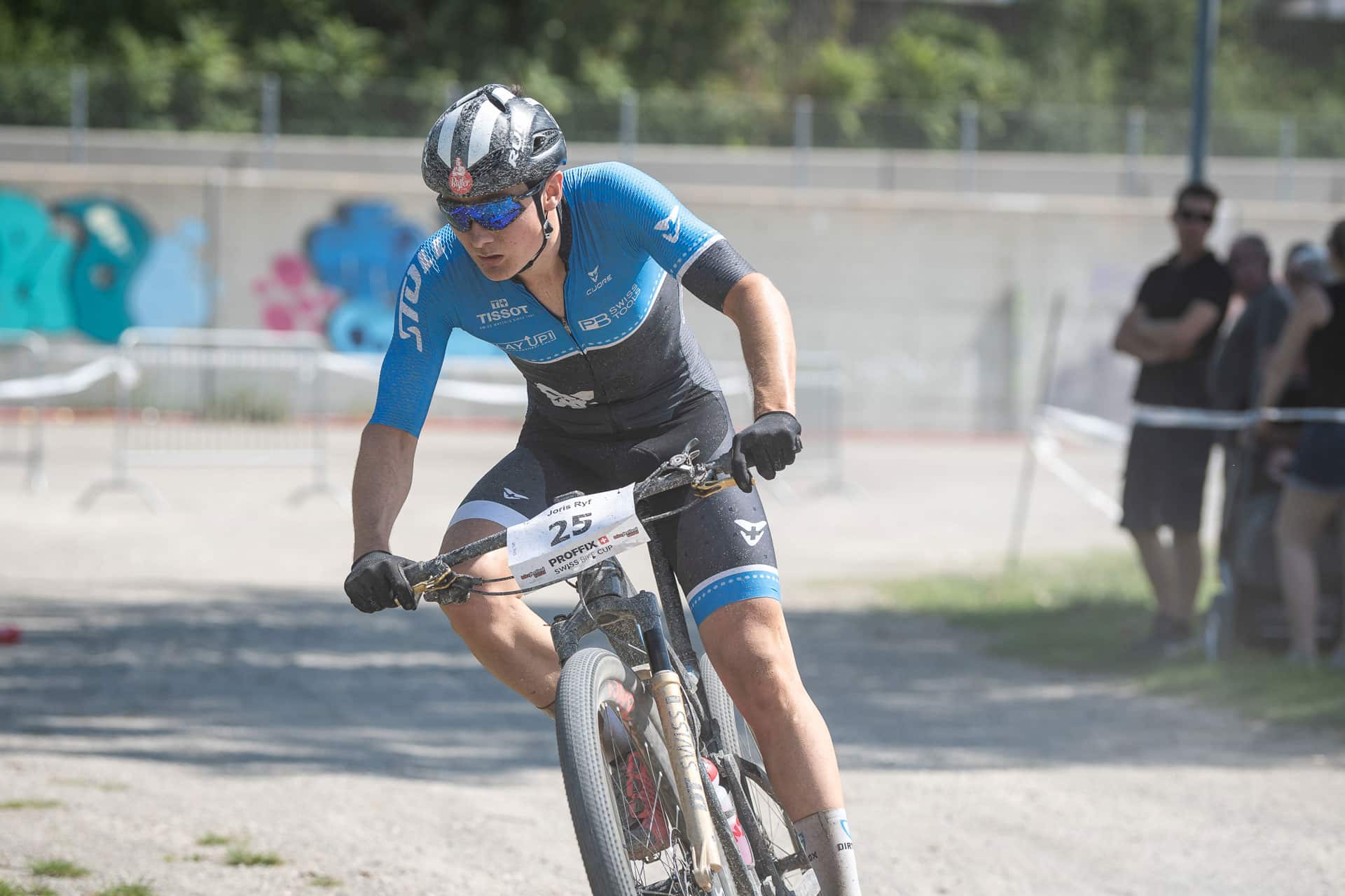 Zu guter Letzt stieg um 14:00 Uhr noch Joris Ryf bei den Elite Herren ins Rennen. Er beschrieb sein Rennen wie folgt: «Der wichtige Start mit der engen Ausfahrt aus der Pferderennbahn gelang mir sehr gut. Geschickt gelang es mir auf den flachen Passagen wenig Führungsarbeit zu übernehmen und mich so zu erholen, so dass ich an den entscheidenden Stellen wieder vorne mitfahren konnte. Schon in der zweiten Runde wurde unsere grosse Verfolgergruppe auseinandergerissen. Ich fühlte mich sehr gut und versuchte mich in der dritten Runde von meinen Mitstreitern zu lösen und so den Anschluss an eine vordere Gruppe zu schaffen. Dadurch musste ich einige Zeit alleine fahren und konnte von keinem Windschatten profitieren. Ich setzte aber meine Kraft gezielt ein und versuchte mich auf den flachen Passagen so aerodynamisch wie möglich zu machen. Auf den drei letzten Runden konnte ich mit einem anderen Fahrer zusammenspannen und mit ihm um den sechzehnten Schlussrang in der Elite-Kategorie und den fünften Schlussrang in der U23-Kategorie kämpfen. Als ich auf der letzten Runde merkte, dass sich uns eine sehr grosse Gruppe näherte, verlor ich etwas die Geduld und investierte auf der Fläche etwas zu viel Kraft und so konnte mich dieser direkte Konkurrent, am etwa zwei Minuten langen Anstieg, abhängen. Ich konnte einen guten siebzehnten Schlussrang ins Ziel fahren und mir zum ersten Mal in meiner Karriere UCI-Punkte bei einem HC-Rennen holen».