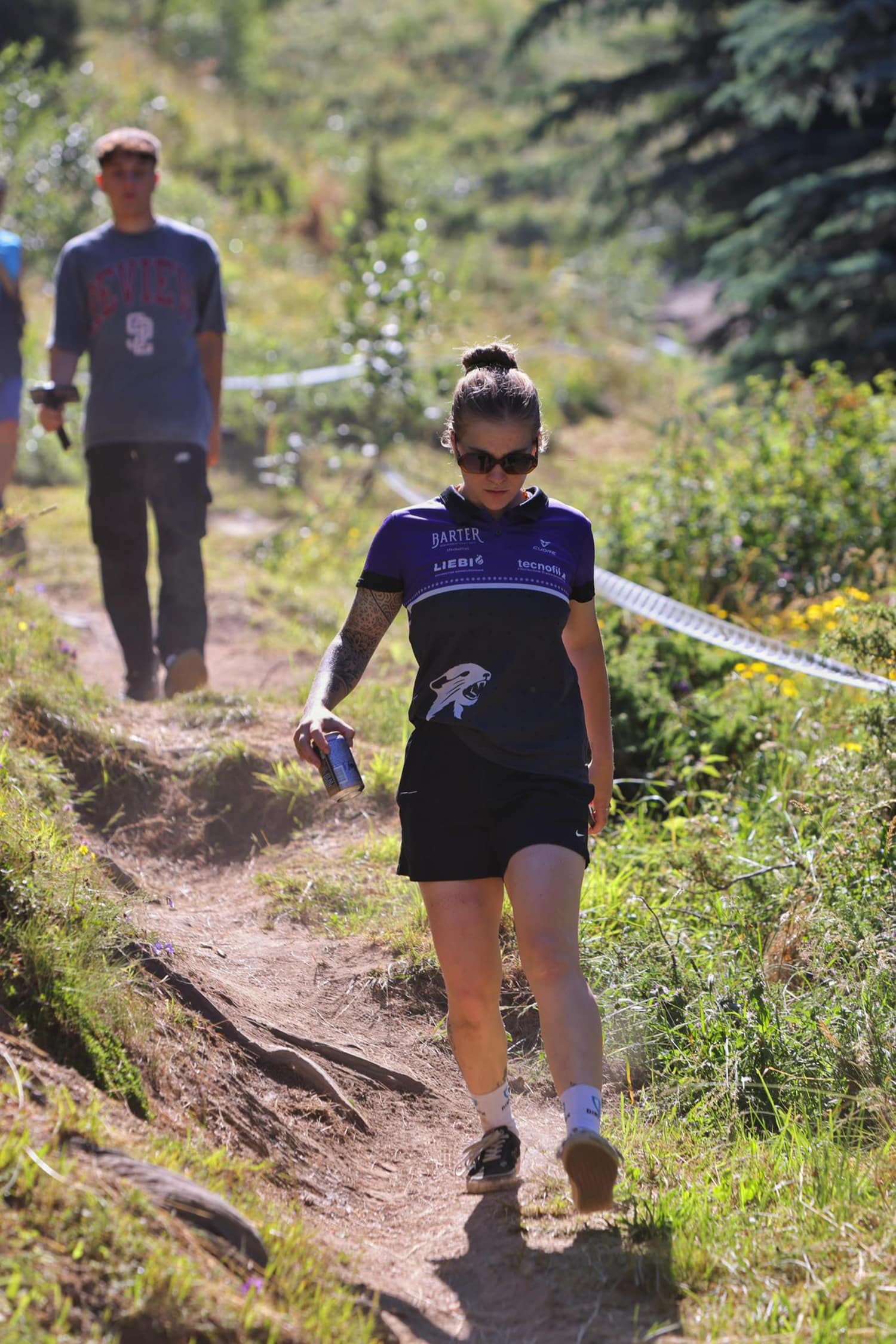 «Ein Wochenende mit vollem Gefühlschaos. Das ganze Programm hatte ich durch, als ich am Sonntag nachhause fuhr. Eine Achterbahnfahrt der Gefühle. Die Strecke war trocken, extrem schnell und herausfordernd. Während des Trainings am Freitag und Samstag konnte ich das Fahren kaum geniessen. Ich mochte die Strecke eigentlich, aber ich hatte Angst. Angst bei den schnellen Geschwindigkeiten wieder auf den Kopf zu fallen. Des Weiteren war es hart für mich die Informationen, welche so schnell auf mich zu kamen, zu verarbeiten. Auch einige Sprünge waren nicht ohne. Ich hatte mehrere Male Glück und konnte mich vor groben Stürzen retten. Das ganze Wochenende bin ich tatsächlich nie gestürzt. Ich war nervös, sehr nervös. Die Qualifikation fuhr ich sicher und entspannt, sprang auch nicht alle Sprünge. Ich wurde 13. Irgendwie weiss ich nicht was ich erwartete, aber ich war doch enttäuscht von meiner Leistung. Ich wusste nicht wo mir der Kopf stand. Am Samstag hatte ich dann noch technische Probleme mit meiner Gabel. Nach dreistündiger Doktorarbeit war mein Bike um 21:00 Uhr endlich wieder fahrbereit. Bis dahin hatte ich weder geduscht, noch etwas gegessen. Ich war tatsächlich kurz davor, meine Sachen zu packen und nachhause zu gehen. Doch es braucht schon viel bei mir, dass ich „aufgebe“. Also gab ich dem nächsten Tag, dem Sonntag noch eine Chance. Ich machte 2 Training-Runs. Ich versuchte meinen Kopf und die Stimmen, welche Angst vor einer erneuten Gehirnerschütterung hatten, etwas verstummen zu lassen. So sprang ich bereits im ersten Trainings-Run am Sonntagmorgen alle Sprünge. Ich fühlte mich etwas besser und selbstsicherer. Beim zweiten Run jedoch, hatte ich wieder knapp einen groben Sturz über einen Sprung.