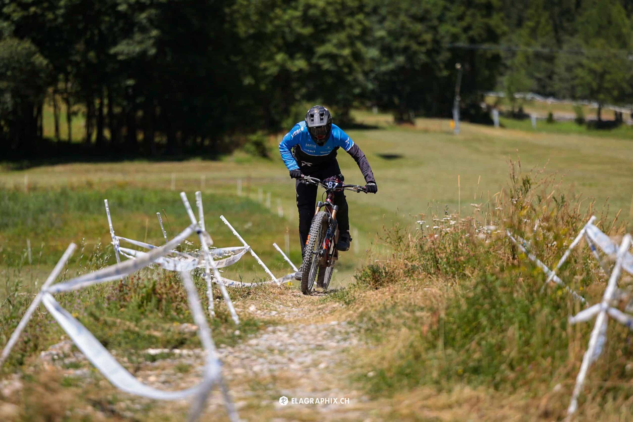 Benjamin «Benj» Webers Bericht: «Das Training verlief gut und ich fühlte mich wohl beim Fahren. Die Stages waren im Vergleich zur letzten Woche deutlich weniger technisch. Ein grosser Teil der Strecken war Slalom auf Wiesen. Mir fiel es schwer einzuschätzen wie schnell man die Gras-Kurven fahren konnte, ohne dass das Bike ausbricht. Am Sonntag war ich parat für das Rennen. Nach der ersten Stage, mit viel Tret-Sektionen, war ich zuversichtlich für den Rest des Tages. In der Stage 2 bin ich auf Nummer sicher gefahren und hatte keine grösseren Fahrfehler. Die Stage 3 wurde mir zum Verhängnis. Ich fuhr sehr zurückhaltend, bremste an Orten an denen es nicht nötig gewesen wäre und machte mehrere Fahrfehler. Ich verlor immer mehr Zeit und konnte diese nicht wieder gut machen. In der vorletzten Stage fuhr ich zufriedenstellend. Ich konnte meine Lines fahren, auch wenn die Strecke sich deutlich verändert hatte gegenüber dem Vortag. In der zweiten Hälfte der Stage riss mir eine Speiche im Vorderrad. Ich musste mein Tempo verlangsamen, um kein Risiko einzugehen das die Speiche sich im Rad verhakt. Nach einem kurzen Uphill entschied ich das Risiko einzugehen und wieder im Renntempo zu fahren. Alles in allem bin ich nicht ganz zufrieden mit meiner Leistung. Körperlich fühle ich mich gut und verlor in den Sprints nicht viel Zeit. Auf dem Trail bin ich dieses Wochenende deutlich zu fest auf Nummer Sicher gefahren, was sich im Resultat natürlich zeigt. Mein Ziel war es ein Top 10 Resultat zu erreichen. Am Ende wurde es für mich der 14. Platz (41 Eingeschriebene). Ich denke, der Fahrstil dieses Wochenendes lässt sich auch auf die Verletzung im letzten Jahr zurückführen. Mir ist auf jeden Fall nun bewusst wo ich den Schwerpunkt setzten muss, um in den nächsten Rennen besser abzuschneiden.»