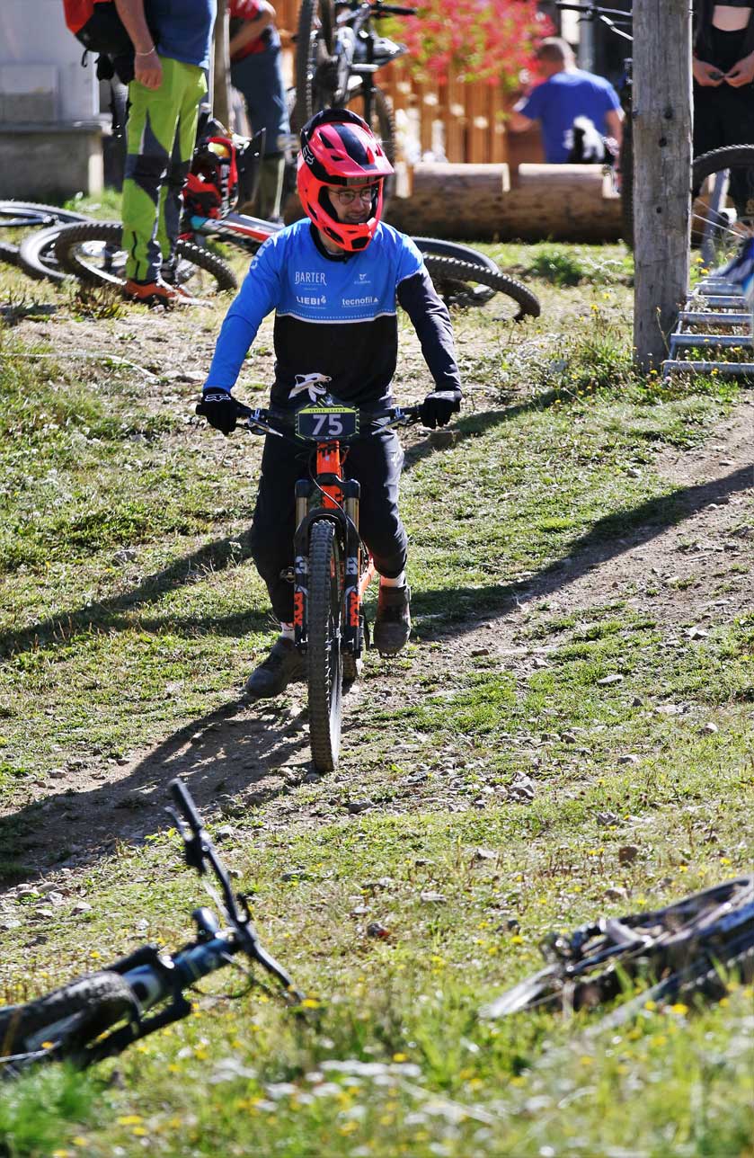 Benjamin «Benj» Weber: «Am Sonntag stand der letzte Serien-Stopp der SES auf dem Programm. Ein spannendes Rennen war zu erwarten. Ich wurde im Training von den Trails positiv überrascht. Es war eine sehr abwechslungsreiche Mischung aus Bikepark, Wanderwegen und sonstigen natürlichen Bike Trails. Ich fühlte mich im Training gut und wohl auf den Trails und freute mich auf den Renntag. Am Sonntagmorgen waren die Trails deutlich trockener als am Vortag, was mir passte. Ich konnte die erste Stage mehrheitlich sauber fahren und hatte eigentlich ein gutes Gefühl. Der Blick auf das Livetiming zerschlug dieses Gefühl dann ziemlich schnell. Kurz vor dem Uphill zur Stage 2 bemerkte ich, dass an meinem Hinterrad eine Speiche fehlte und der Reifen somit am Rahmen streifte. Nach einem kurzen Radwechsel machte ich mich auf den Weg zur Stage 2. In dieser machte ich einige Fahr- und Bremsfehler welche mich eine Menge Zeit kosteten. Nach einem kurzen Uphill stand schon Stage 3 auf dem Programm. In dieser musste ich etwas Tempo rausnehmen, da es doch einige Stellen gab welche ziemlich exponiert waren. Nach einem 1h Stoss-Uphill war es Zeit für die 4. und letzte Stage. Ich versuchte nochmals etwas zu attackieren um Zeit gut zu machen. Das klappte so mässig gut. Aber ich konnte wenigstens ein sturzfreies Rennen fahren. Am Ende fuhr ich lediglich auf den 18. Rang. Es war etwas frustrierend, weil ich mich während des Tages eigentlich gut gefühlt hatte. Das war jedenfalls nicht so, wie ich das letzte SES-Rennen der Saison beenden wollte.»