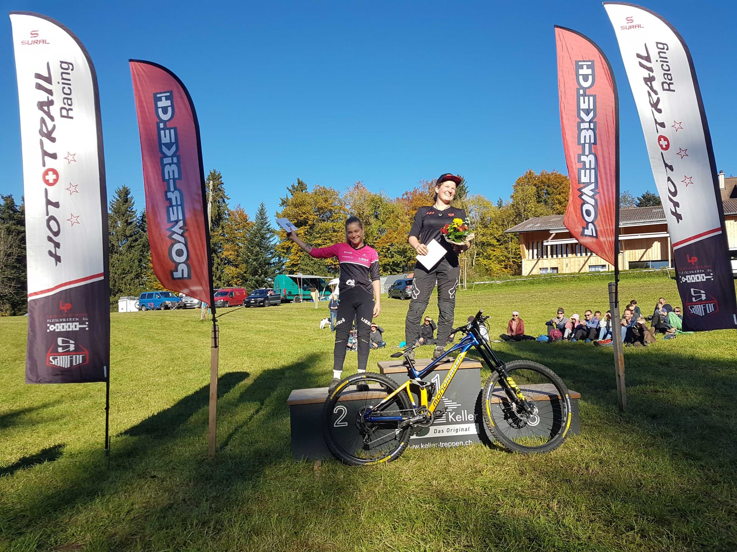 Ramona erreichte im ersten Lauf Bestzeit. Das war umso erstaunlicher, als dass ihre Konkurrentin im letzten Rennen in Bellwald, vierte wurde. Ramona bekanntlich siebte. Im zweiten Lauf gab es dann ein Kopf an Kopf Rennen mit dem besseren Ende für Ramonas Konkurrentin. Mit 1.6 Sekunden Rückstand, wurde es aber sehr knapp. Ramona durfte sich über den zweiten Platz freuen. Dann folgte noch die etwas unverhoffte Krönung des Tages. Ramona gewann die Gesamtwertung der HOT-Trail Series. In ihrem ersten Downhill-Jahr, kam dies doch überraschend. Die Freude bei ihr und ihrem Umfeld war gross. Der Wechsel vom Cross-Country zum Downhill scheint auch resultatmässig der genau richtige Schritt gewesen zu sein. Bravo Ramona!