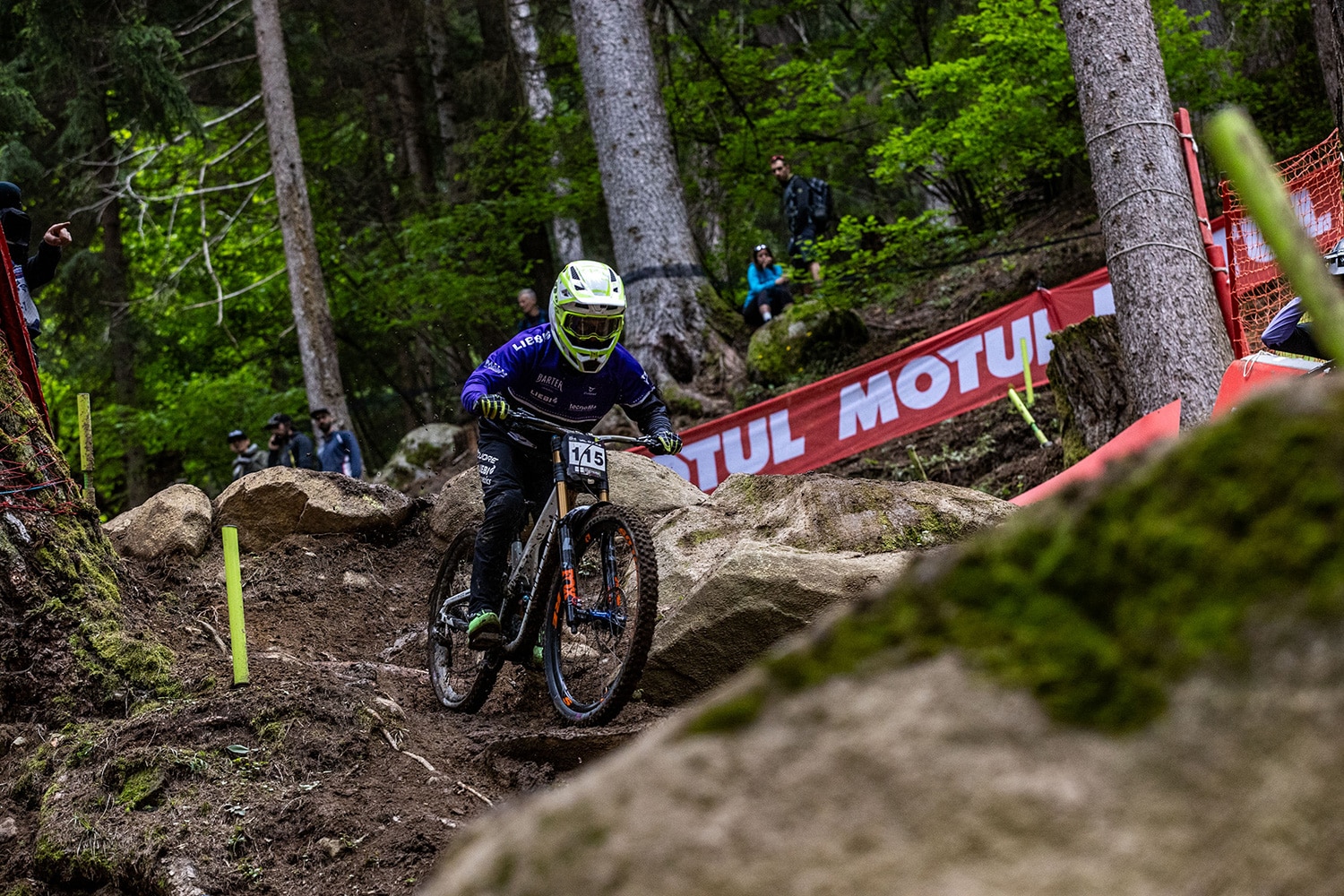 «Ce week-end, j’ai participé à une compétition de vélo de descente pour une coupe du monde à Val di Sole en Italie. J’ai eu un super début de week-end avec de bons entraînements. Nous avons calculé le nombre de descentes à effectuer pour préserver suffisamment d’énergie pour le jour des qualifications. Malheureusement, lors de la course, je n’ai pas su prendre une bonne décision de trajectoire, ce qui m’a coûté une erreur en temps et a entraîné de nombreuses fautes. En conséquence, je n’ai pas réussi à passer les qualifications et je n’avais pas une bonne vitesse en général!»