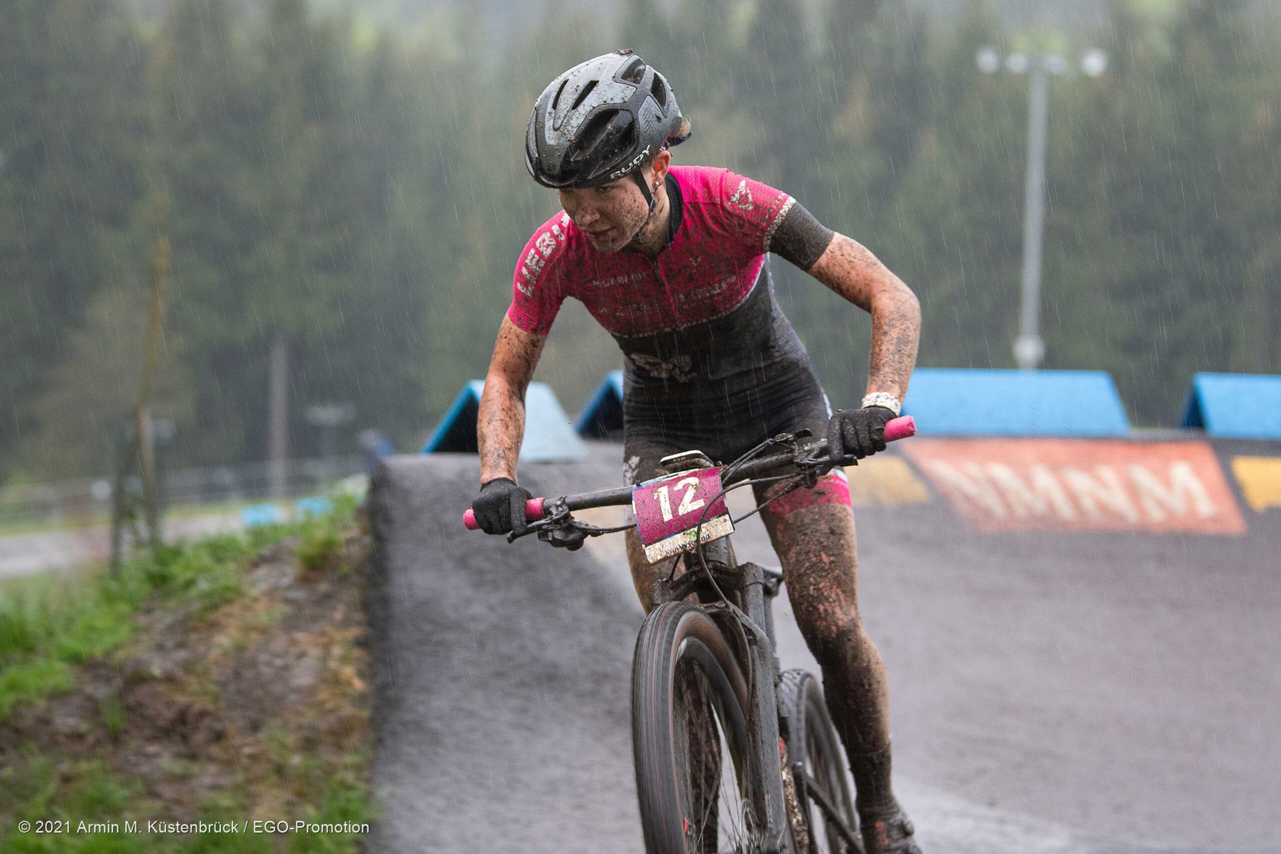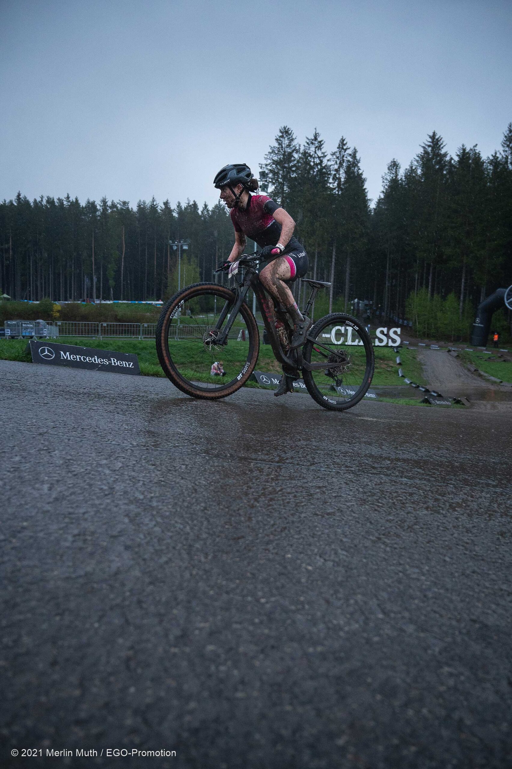 Nach viel Regen in den vergangenen Tagen, ging es dann für Tina Züger am Samstag um 17:00 an den Start. Eine Schlammschlacht war angesagt. Die Strecke, auch bei trockenen Verhältnissen sehr anspruchsvoll, wurde noch schwieriger zu fahren. Dank dem guten Resultat in Albstadt, konnte Tina mit Startnummer 12 aus der zweiten Startreihe den Wettkampf beginnen.