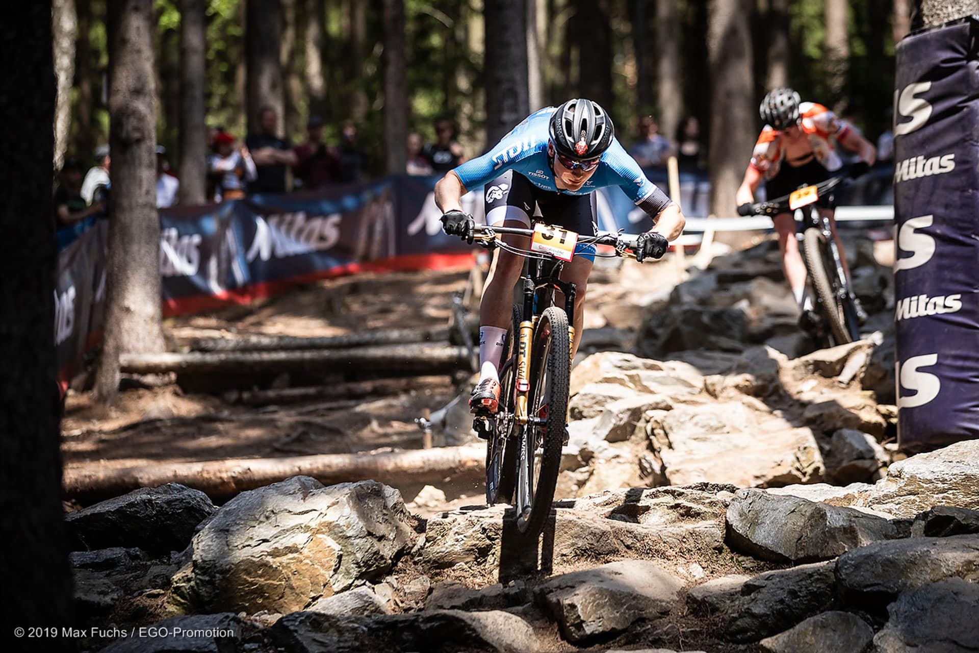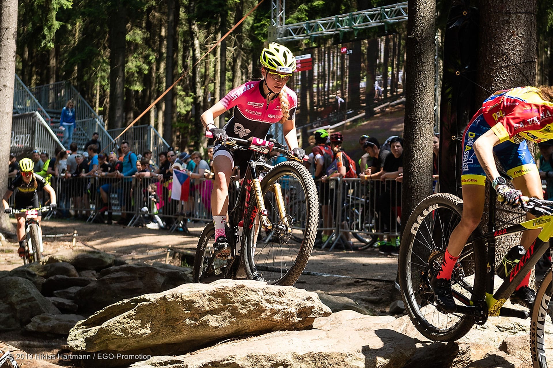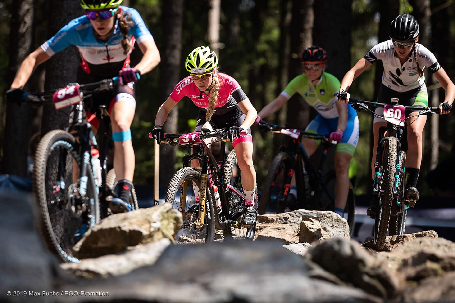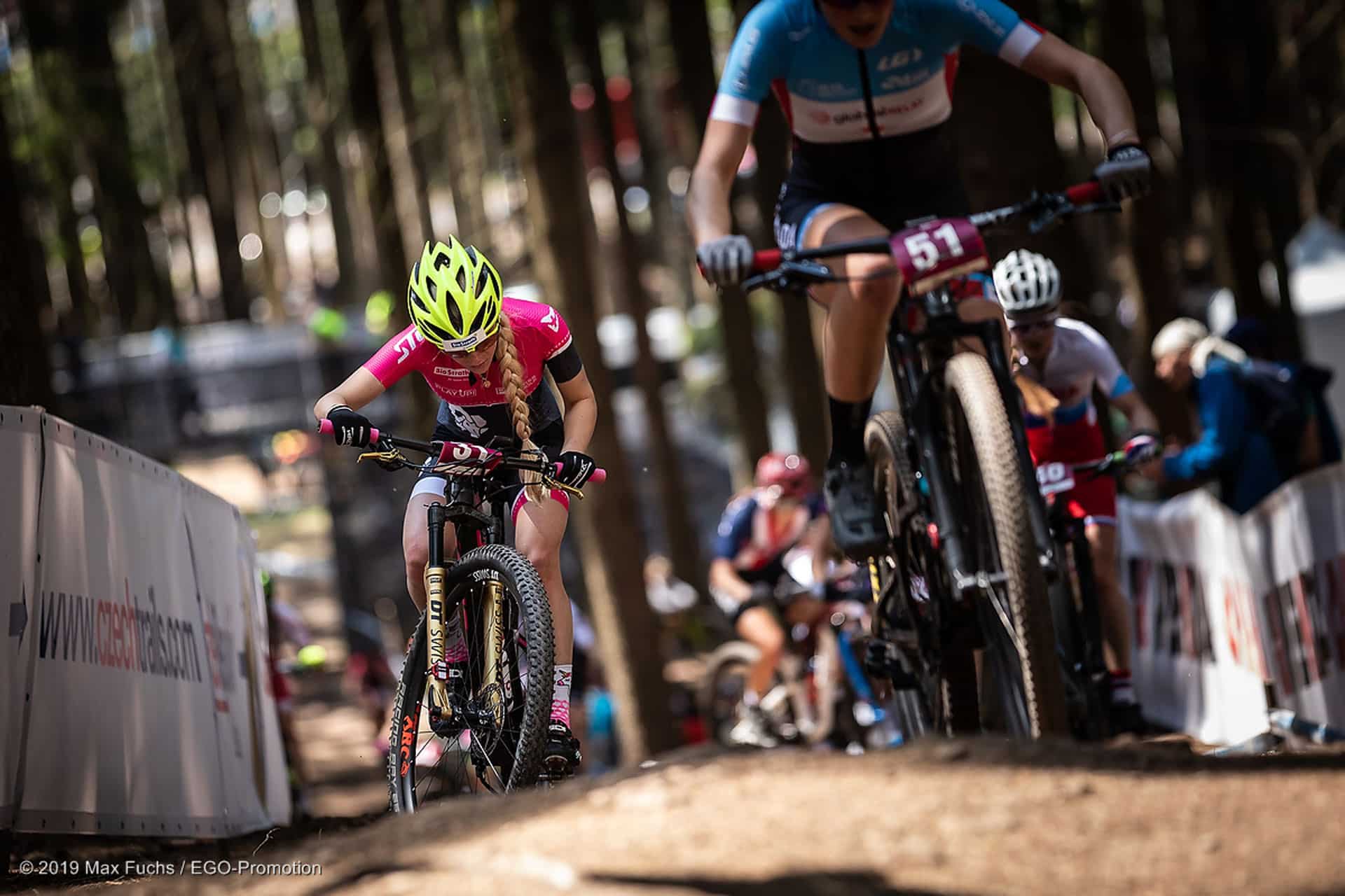 Um 11:00 fiel der Startschuss für Ramona. Eine Startrunde und 5 Runden galt es zu bewältigen. Nach der Startrunde fand sich Ramona auf Platz 46. Sie kämpfte sich dann langsam nach vorne. Ohne Fehler überwand sie die vielen Steingärten und technisch sehr anspruchsvollen Passagen. Die Beine drehten gut aber die Lunge wollte zwischendurch platzen. „Ich kam einfach nicht in den Rhythmus“, berichtete sie. Erst gegen Schluss des Rennens gab es ein Lichtblick. Die letzte Runde war ihre Schnellste. Im Ziel reichte es für den 37. Platz von 71 (Startliste). Rangmässig nicht ganz das was sie sich vorgestellt hatte, aber es lag einfach nicht mehr drin. Die Strecke in Nové Město na Moravě und Ramona Kupferschmied wollen einfach keine Liebesbeziehung werden. „Next time next chance!“