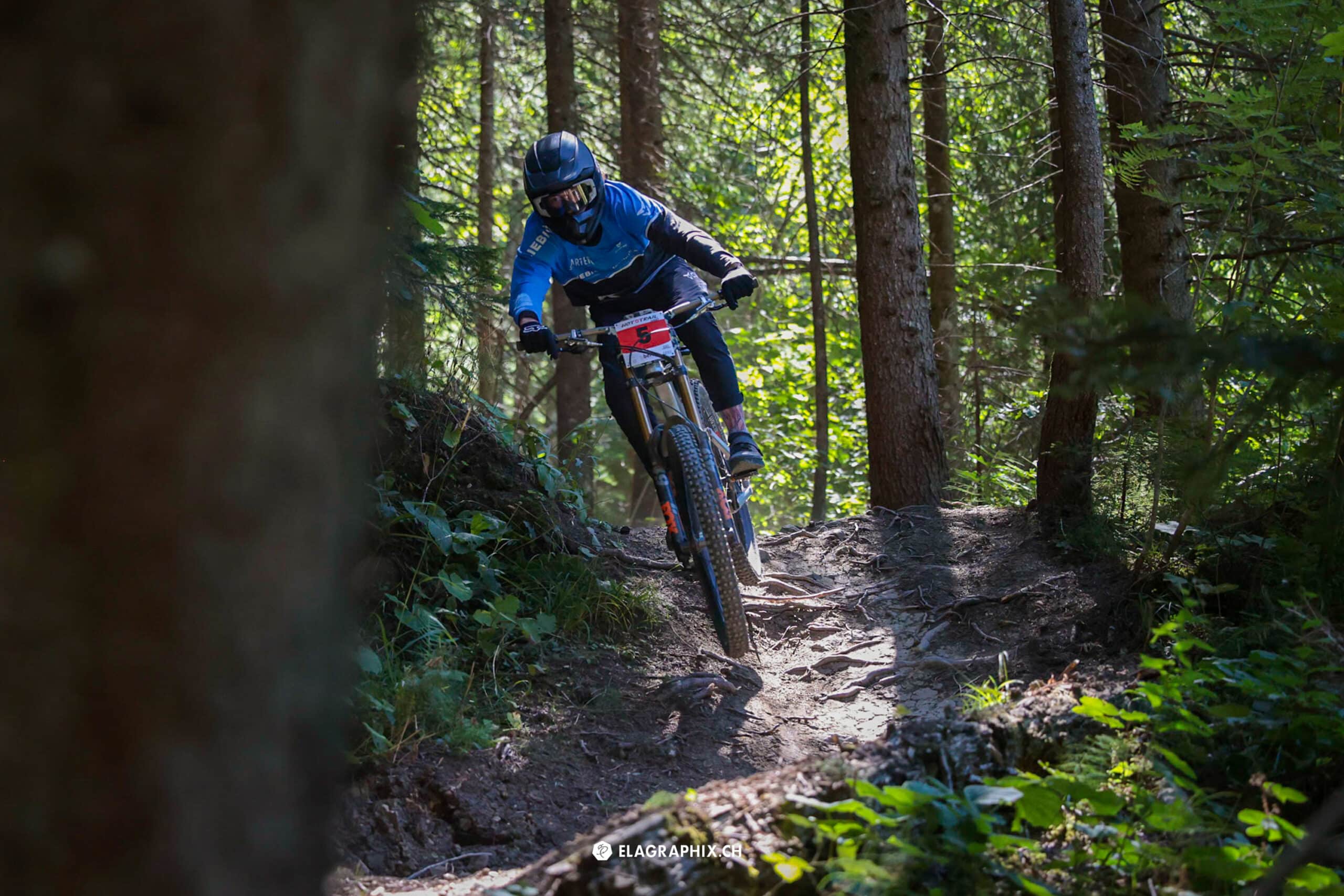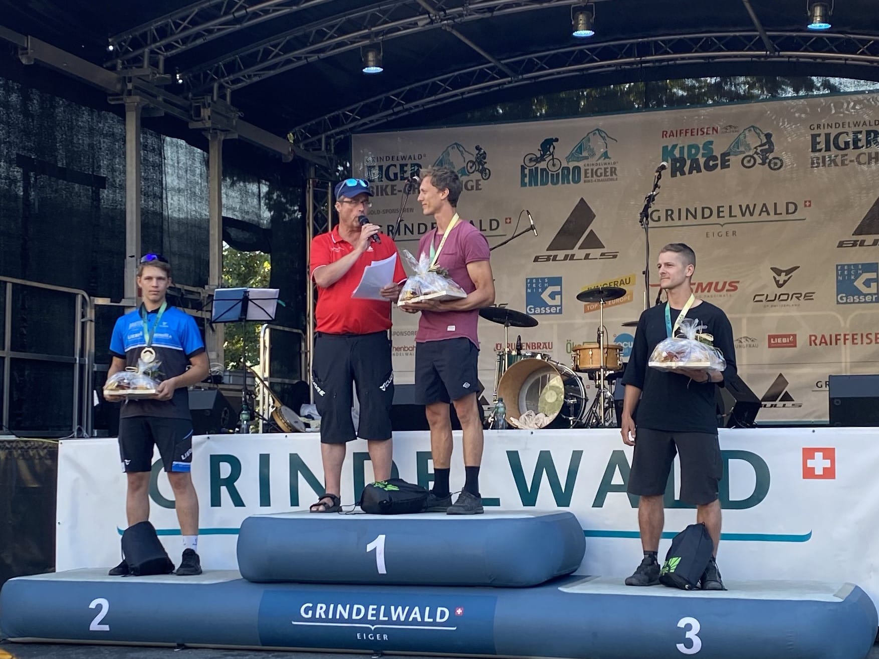 Benjamin «Benj» Weber: «Diesen Samstag war für mich das Enduro Rennen in Grindelwald an der Reihe. Da es kein offizielles Training gab, fuhr ich die Strecken am Freitag selber für mich als Training. Die Stages waren sehr abwechslungsreich aber eher kurz. Am Samstag startete das Rennen mit einem kurzen Uphill zur Stage 1 (Strecke, Teilabschnitt), welche dann als Stage 5 nochmals gefahren wurde. Auf der ersten Strecke hatte es sehr viele lose Steine auf dem Trail. Ich konnte sie aber ohne grosse Fahrfehler fahren und fühlte mich gut auf dem Bike. Die 2. Teilstrecke war nur sehr kurz. Aber auch diese konnte ich fehlerfrei fahren. Vor der 3. Stage gab es eine etwas längere Wartezeit, was mich etwas aus dem Fokus brachte. Zu Beginn der 3. Teilstrecke war eine lange Pedalier- Passage angesagt. Auf dieser waren viele Lines, welche ich am Vortag ansah abgesperrt. So musste ich einige Passagen auf gut Glück fahren. Auf den letzten zwei Stages konnte ich noch etwas mehr Pushen und noch mehr Speed aus den Kurven mitnehmen. Am Ende zahlte sich die Vorbereitung aus. Für mich gab es am Ende des Tages den 2. Platz von 70 Klassierten Männer Overall. Ich bin sehr zufrieden mit dem Rennen und dass ich den 3. Platz von letztem Jahr noch verbessern konnte. Nun freue ich mich auf die Swiss Enduro Series in der Lenzerheide am kommenden Wochenende».