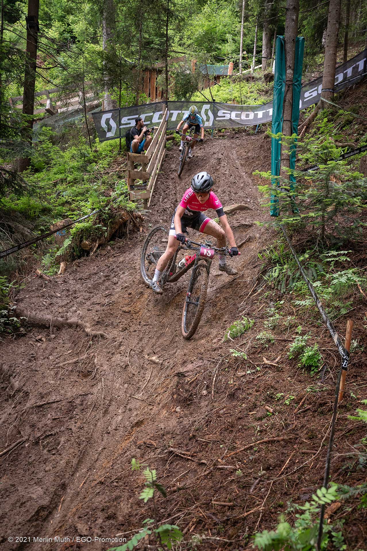 Der Start war gut und ich reihte mich in der Startrunde weit vorne ein. Auf der ersten grossen Runde passierte mir auf einer Wurzel ein kleiner Rutscher, der zu einem Sturz und verbogenem Lenker führte. Also nach dem Aufsteigen wieder runter vom Rad und den Lenker richten. Dabei verlor ich ein paar Plätze. In der Runde drauf hatte ich zu Beginn etwas Mühe und musste noch weitere Athletinnen ziehen lassen. Danach drehte sich das ganze aber wieder und dann war ich es, die überholte. Rang um Rang. In der letzten Runde war plötzlich Rang 8 in Sicht. In den Aufstiegen holte ich diesen Rang und machte auch gleich eine Lücke auf. Zu meinem Glück, wie sich rund 300m vor dem Ziel zeigte. Im Kopf war ich etwa 0.5m weiter vorne, als ich tatsächlich war und verlagerte auf dem Kies mein Gewicht. Schon lag ich am Boden. Der Vorsprung reichte aber bis ins Ziel. Mit Rang 8 bin ich mega happy und die Strecke war richtig cool».