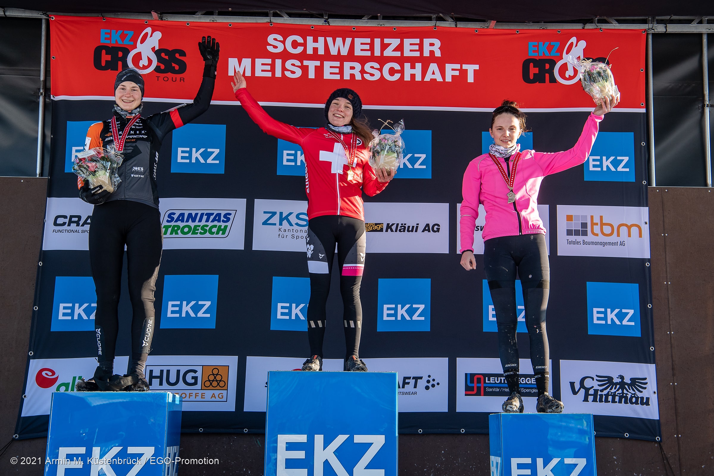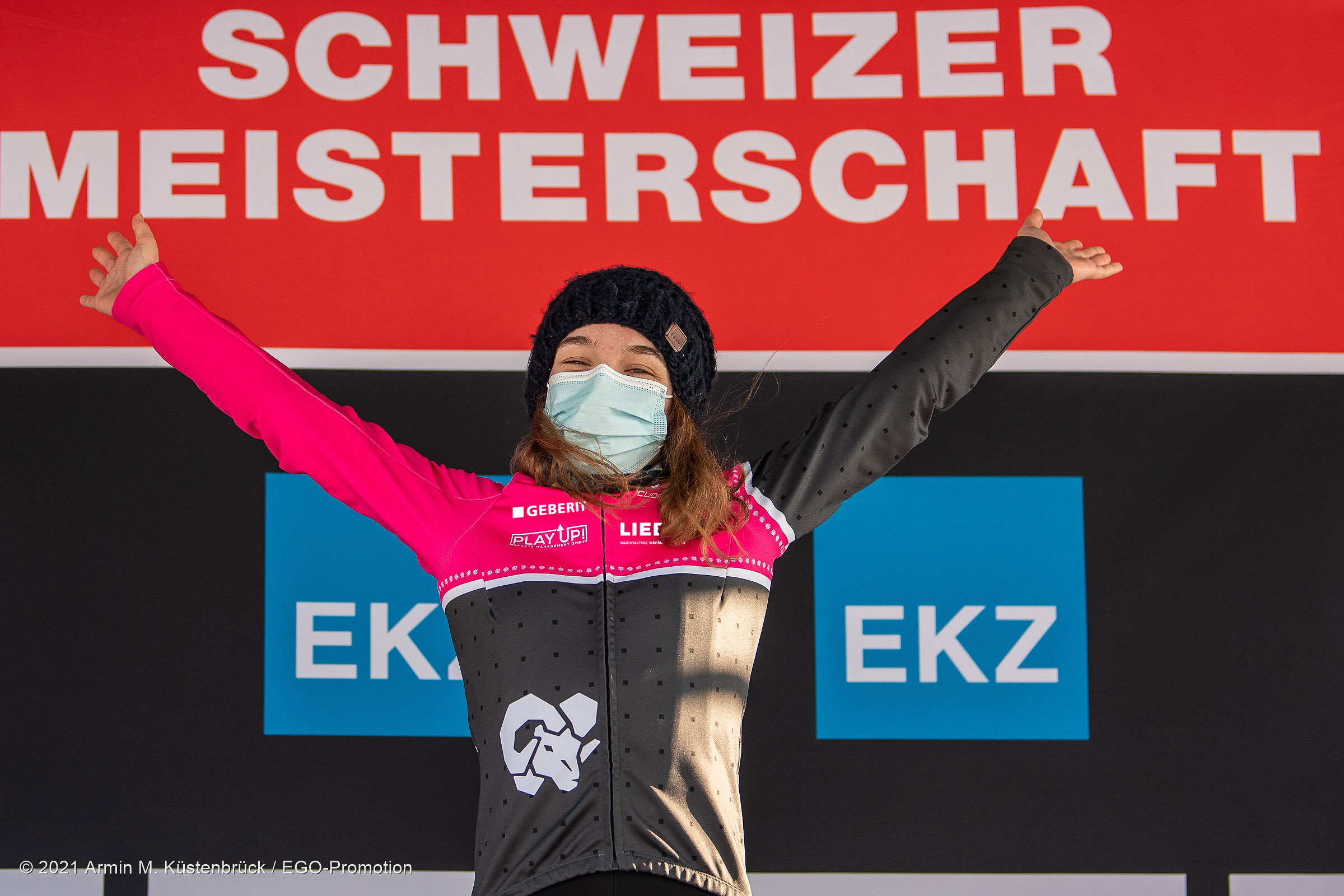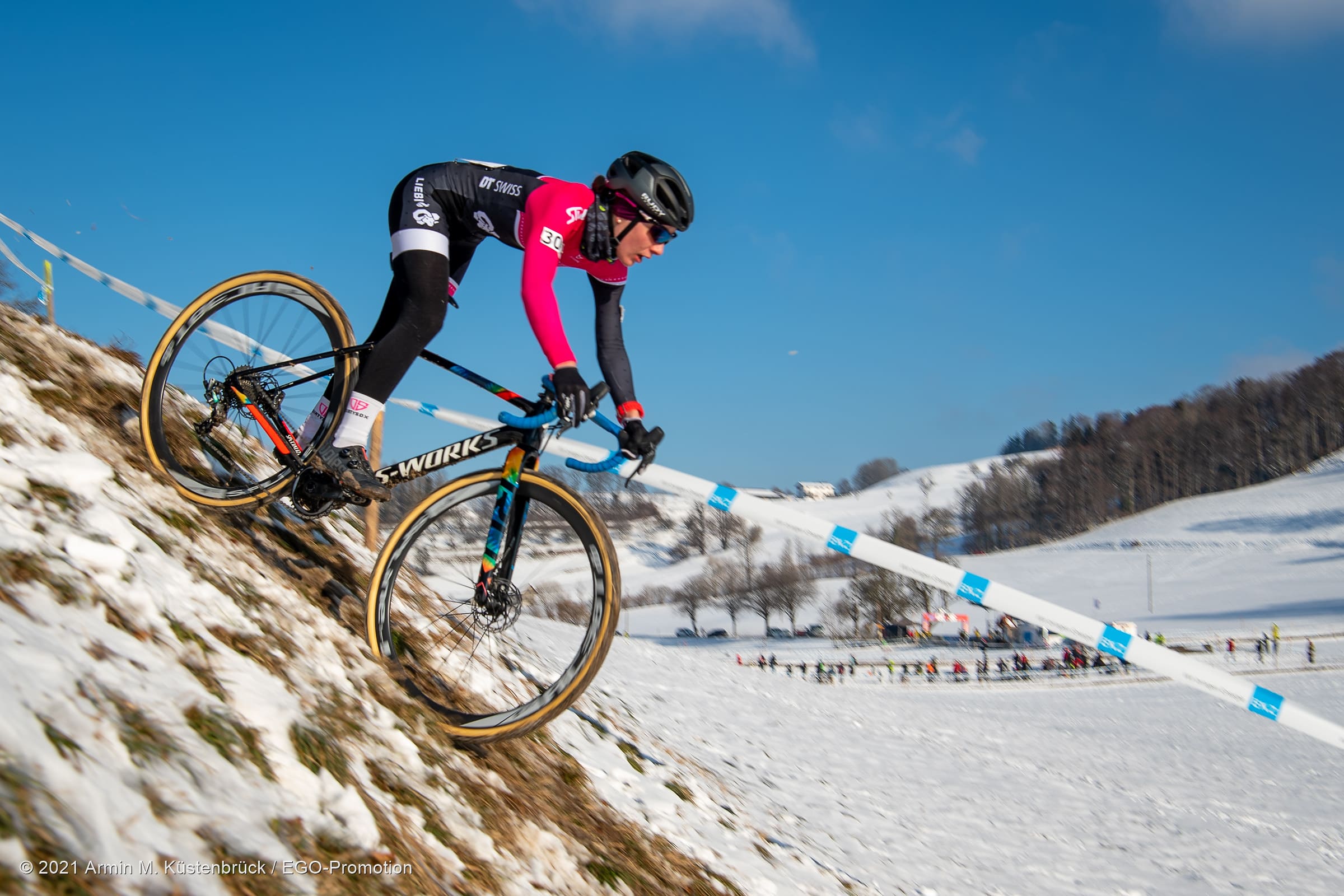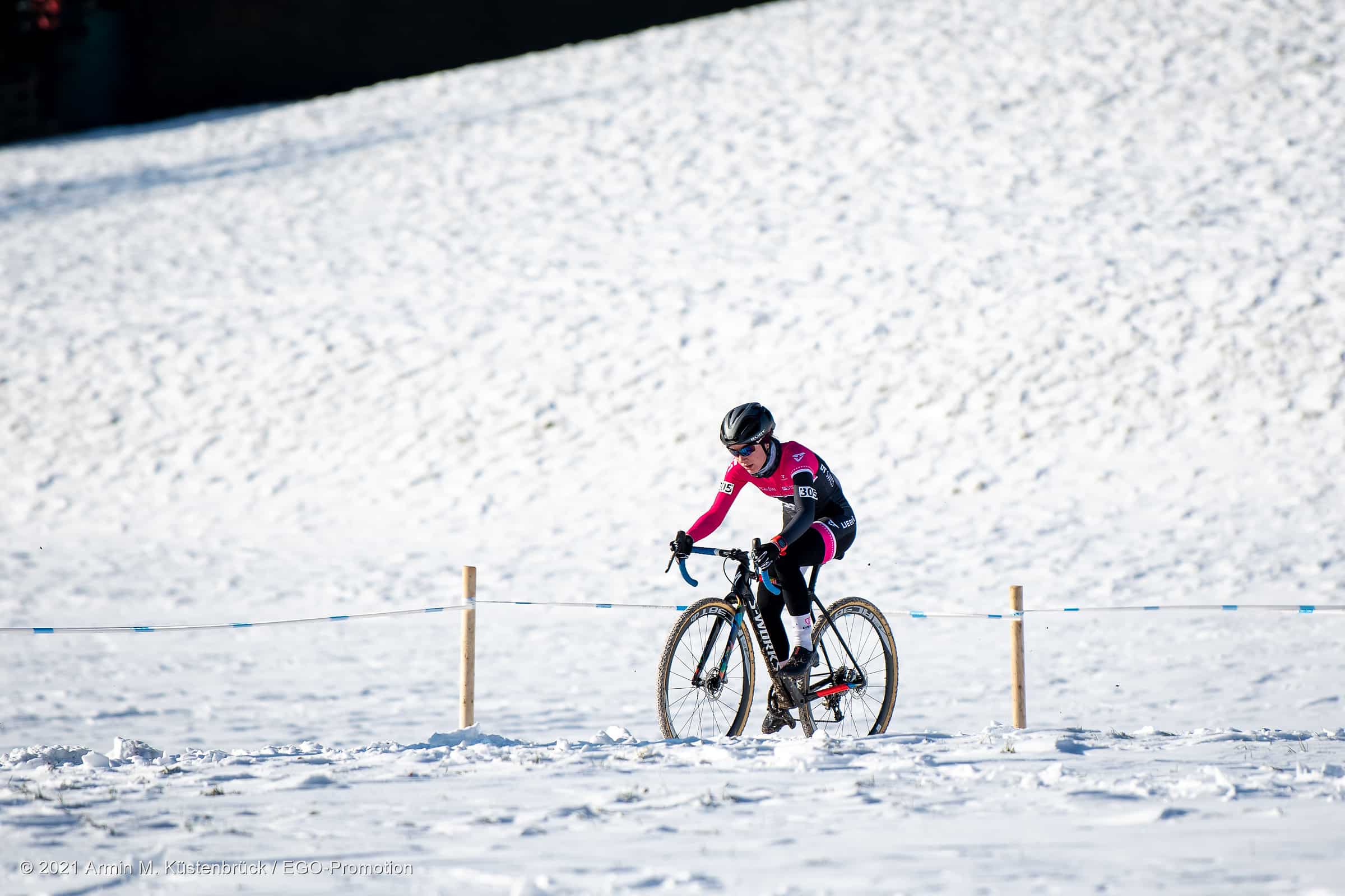 Was für ein Jahresbeginn! Gestern Sonntag fand in Hittnau die Schweizermeisterschaft im Radquer (Cyclocross) statt. Mit dabei unsere Teamfahrerin Tina Züger. Bei sonnigem aber kalten Bedingungen ging es für sie um 13:15h, zusammen mit den U19 und der Elite Damen, an den Start. Ab der zweiten Runde setzte sie sich an die Spitze und gab diese auch nicht mehr her.