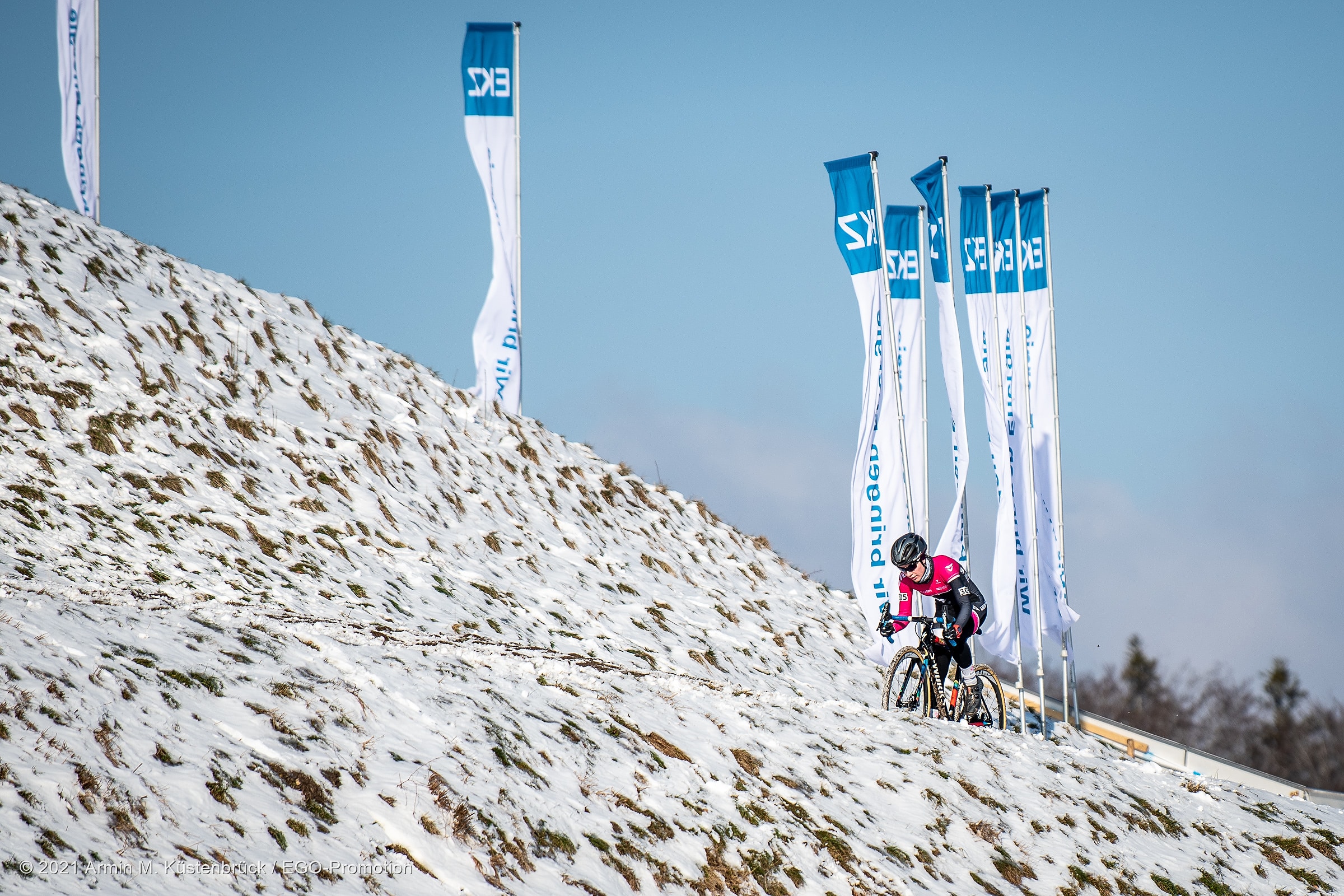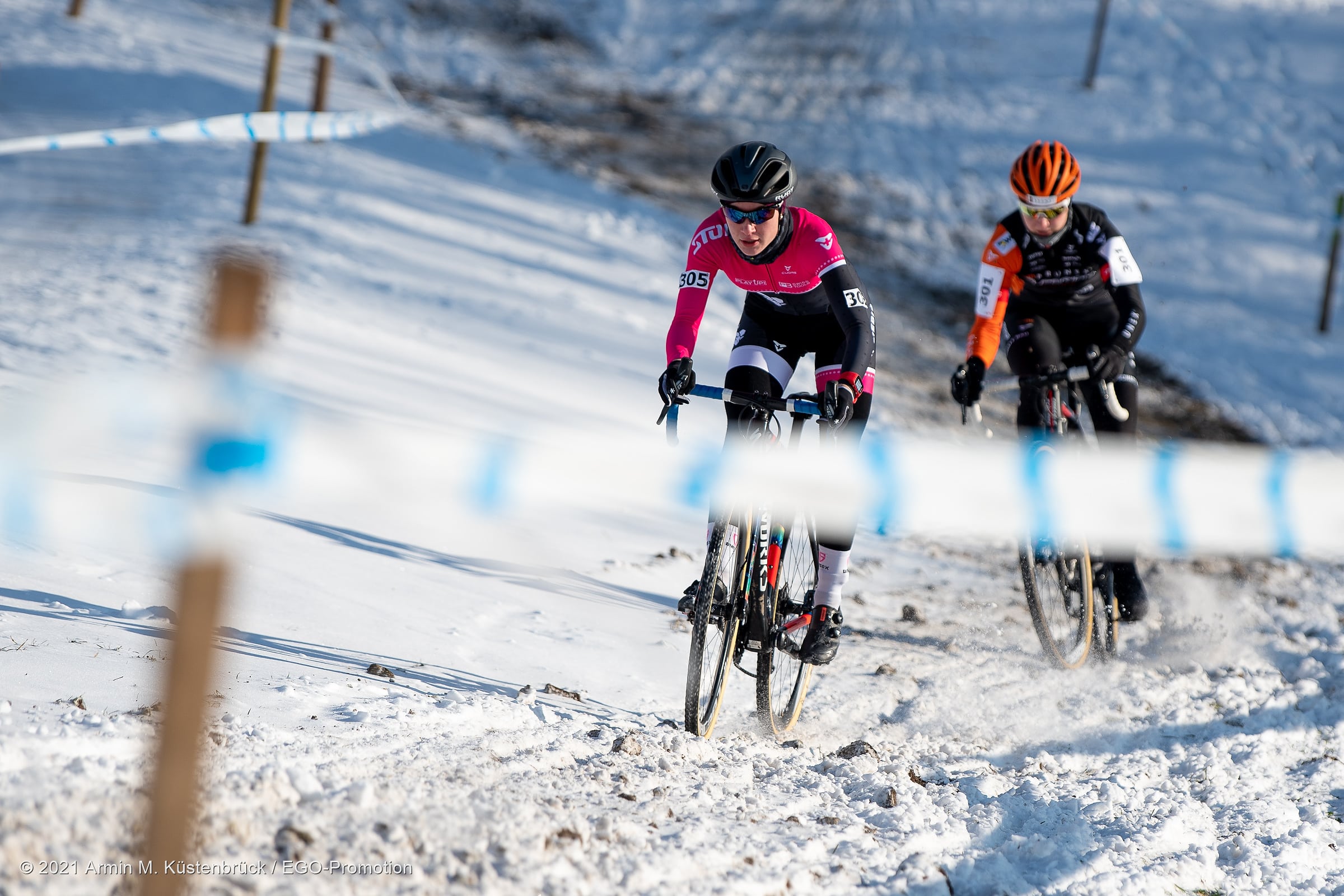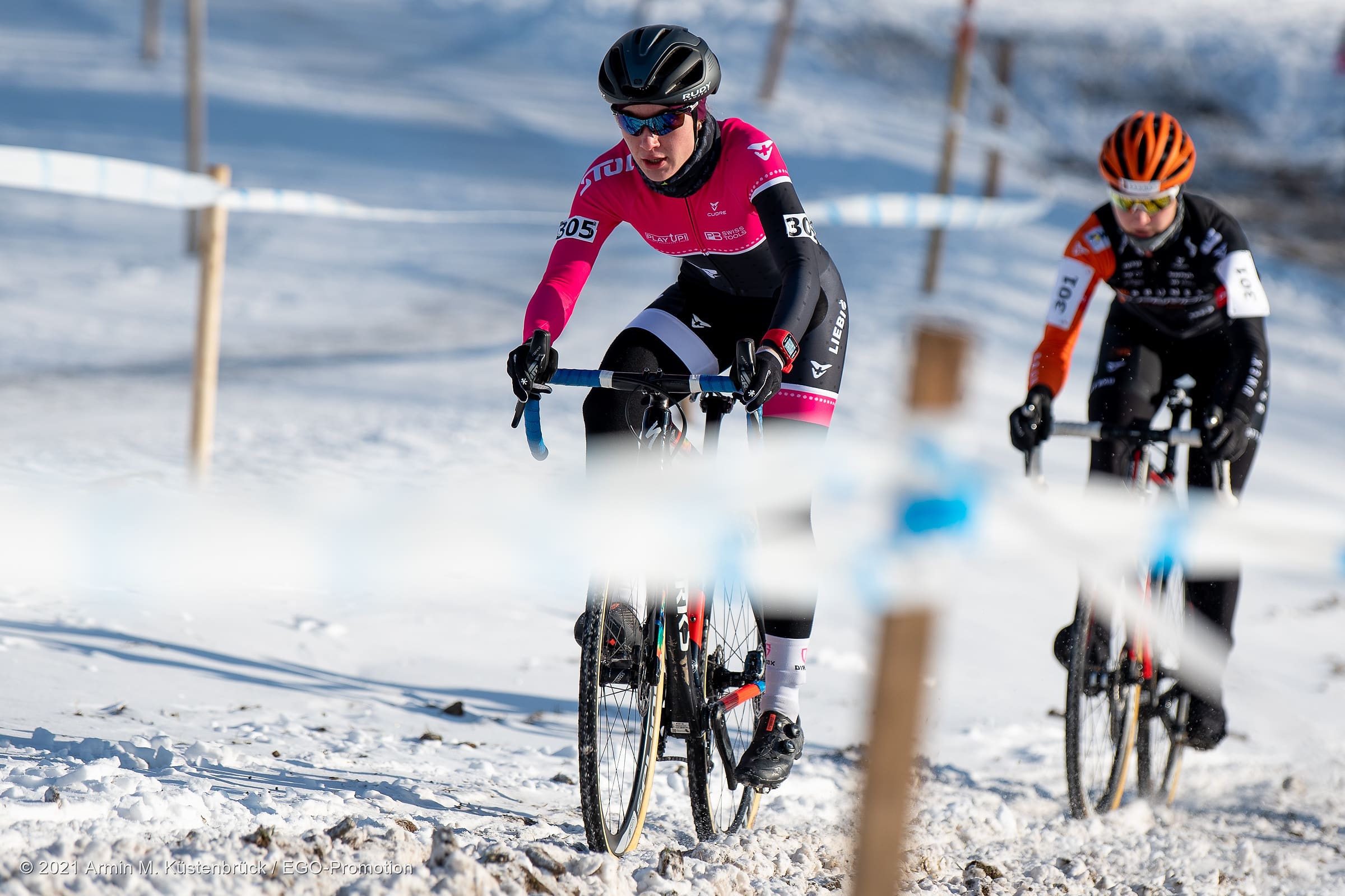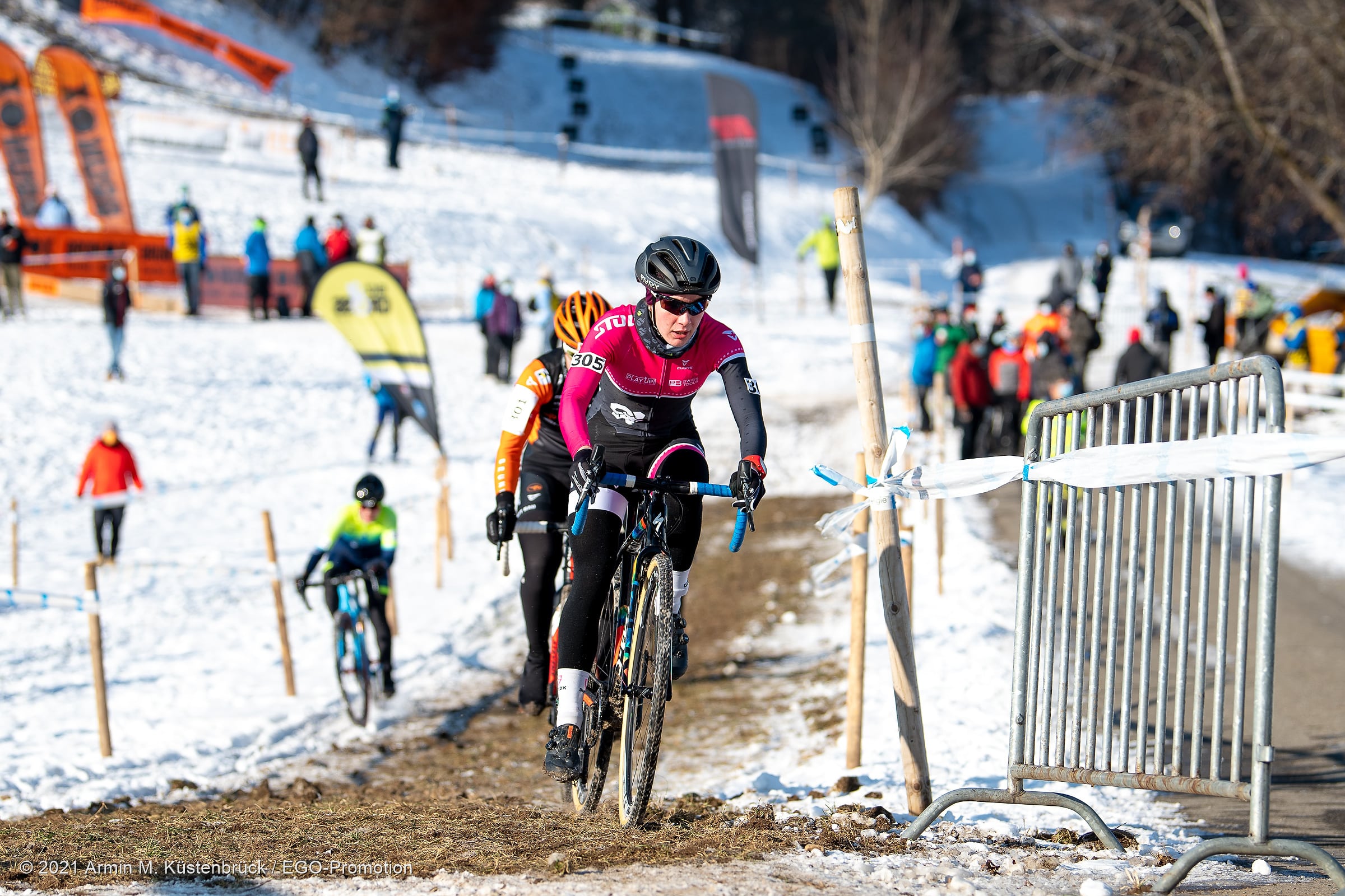 Was für ein Jahresbeginn! Gestern Sonntag fand in Hittnau die Schweizermeisterschaft im Radquer (Cyclocross) statt. Mit dabei unsere Teamfahrerin Tina Züger. Bei sonnigem aber kalten Bedingungen ging es für sie um 13:15h, zusammen mit den U19 und der Elite Damen, an den Start. Ab der zweiten Runde setzte sie sich an die Spitze und gab diese auch nicht mehr her.