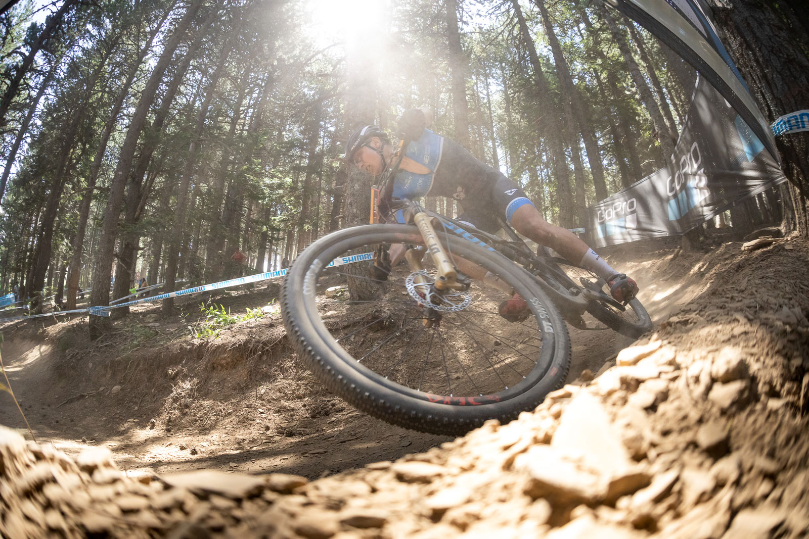 Um 10:15 dann der Start von Joris Ryf. Bei ihm wurden 6 Runden gefahren. Er wurde am Anfang etwas eingeklemmt. Das was für ihn aber gar nicht so tragisch. Damit fuhr er nicht zu schnell in den ersten Aufstieg und das Tempo war kontrolliert. In vierten resp. fünften Runde musste er dann etwas Tempo herausnehmen. Die Rundenzeiten waren trotzdem sehr regelmässig. Die technisch anspruchsvolle Strecke und die Höhe verlangten den Fahrern alles ab. Die Strecke wurde immer staubiger und gleichzeitig stiegen die Temperaturen gegen 30°C. Joris beendete das Rennen schliesslich auf dem 38. Platz.