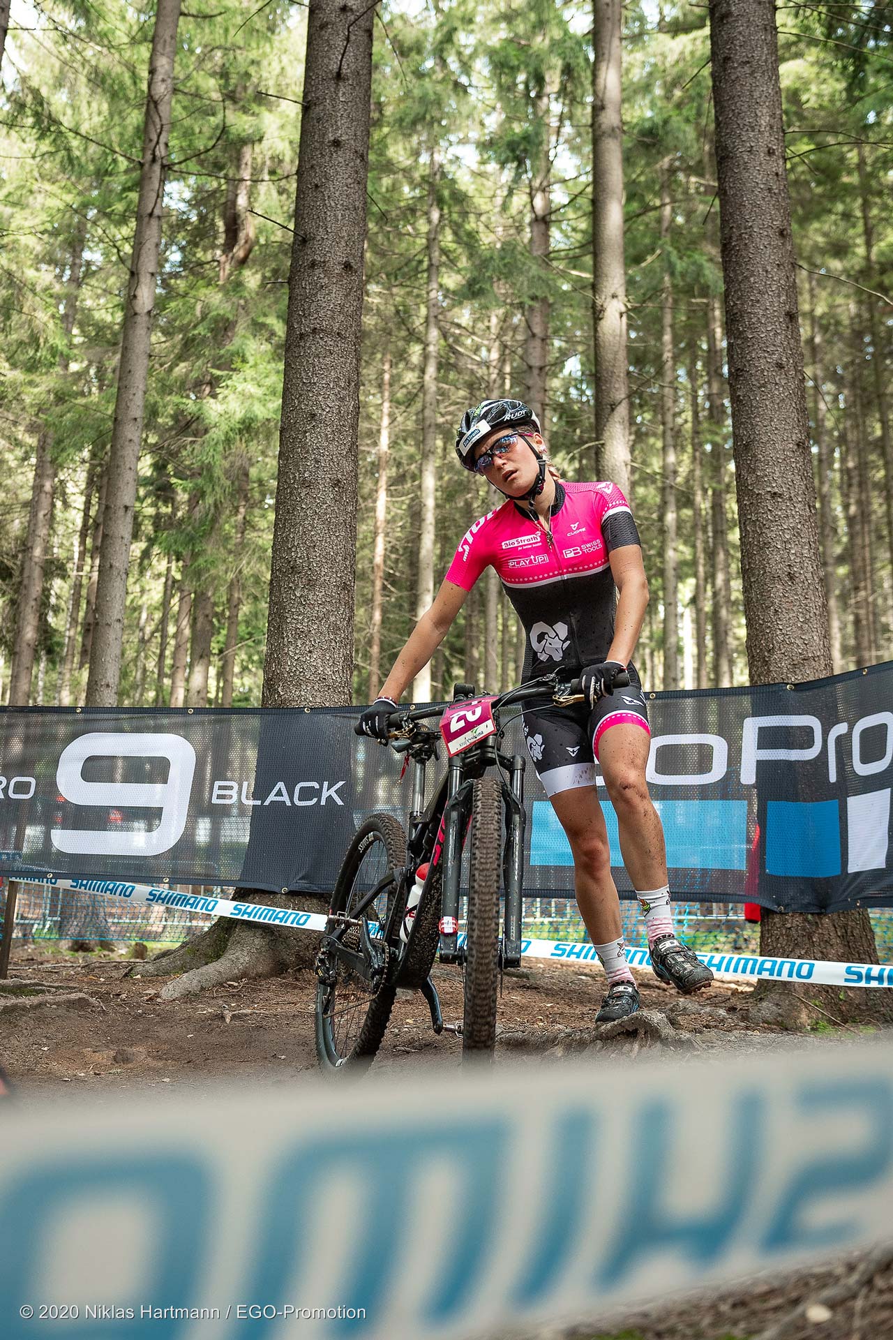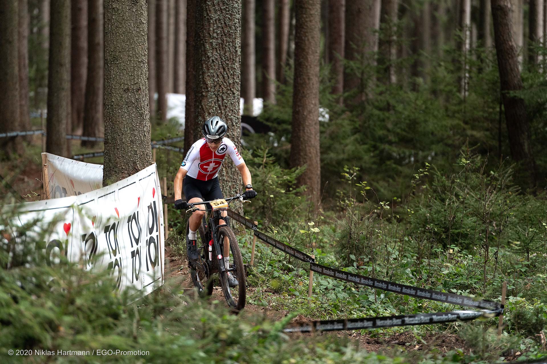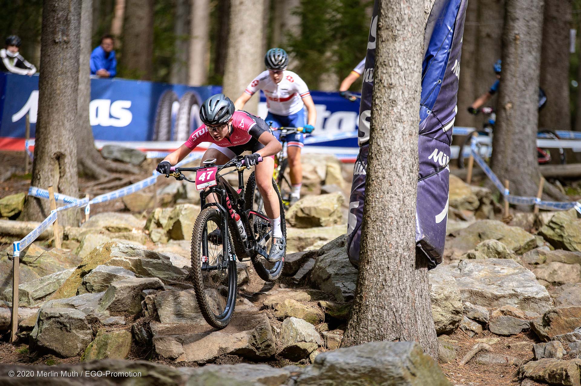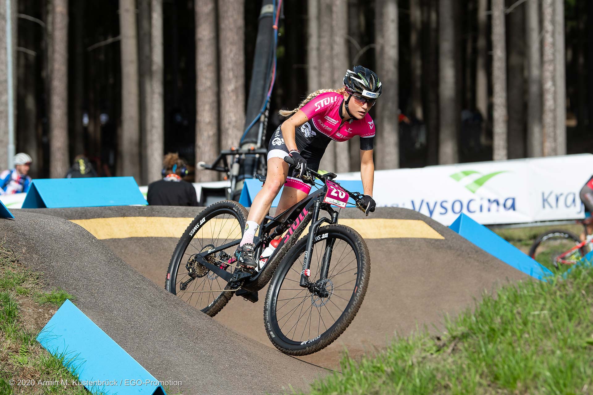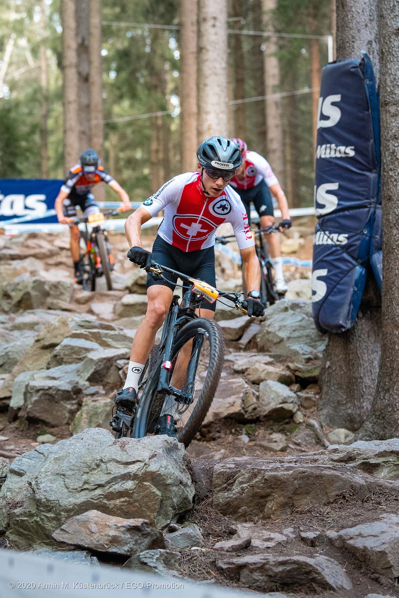 Der 38. Platz am Donnerstag war für Ramona Kupferschmied schwierig zu verstehen. Nach vorne schauen war das Motto. Sie war für den zweiten Lauf guter Dinge und top motiviert. Ging es doch immer noch um die EM-Qualifikation im eigenen Land. Leider sollten Ramona und die Strecke in Nové Mêsto auch beim x-ten Zusammentreffen, keine Liebesbeziehung werden. Im Gegenteil! Nach einer guten Startrunde bremste in einer technischen Passage eine Fahrerin vor Ramona brüsk. Ramona kam zu Fall. Der Lenker verdrehte sich dabei um ca. 45° und eine Viertelrunde später musste sie die Techzone aufsuchen. Kam dazu, dass sich der Schalttrigger löste und die Befestigungsschelle der Bremse defekt war. Erneutes Aufsuchen der Techzone. Später noch ein drittes Mal um die Bremse mit Klebeband fixieren zu lassen. Zwischendurch liess sie ihre Freude und ihr Talent in den technischen Aufstiegen und Abfahrten aufblitzen. Das sah man als Beobachter deutlich. Schade für den grossen Aufwand und der ausbleibende Lohn. «Kopf hoch!».
