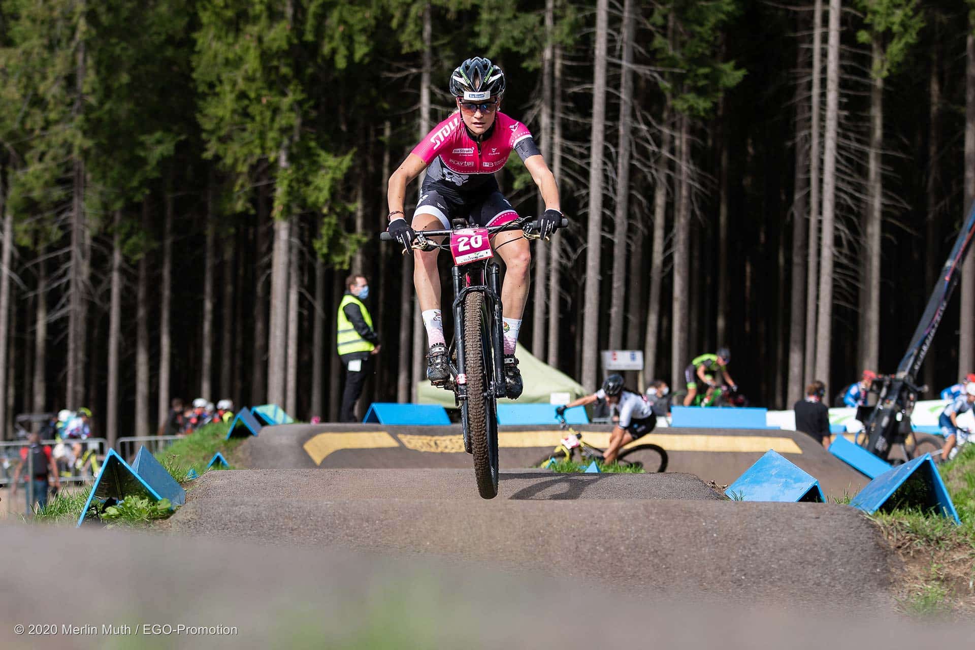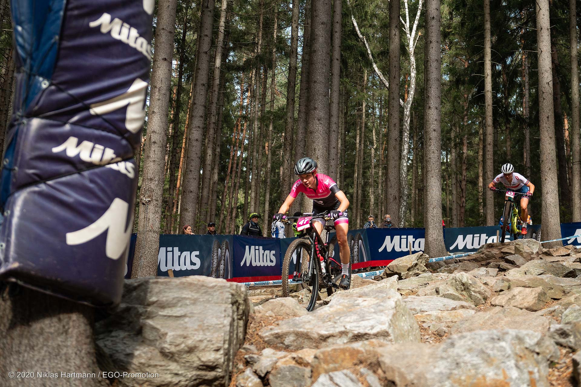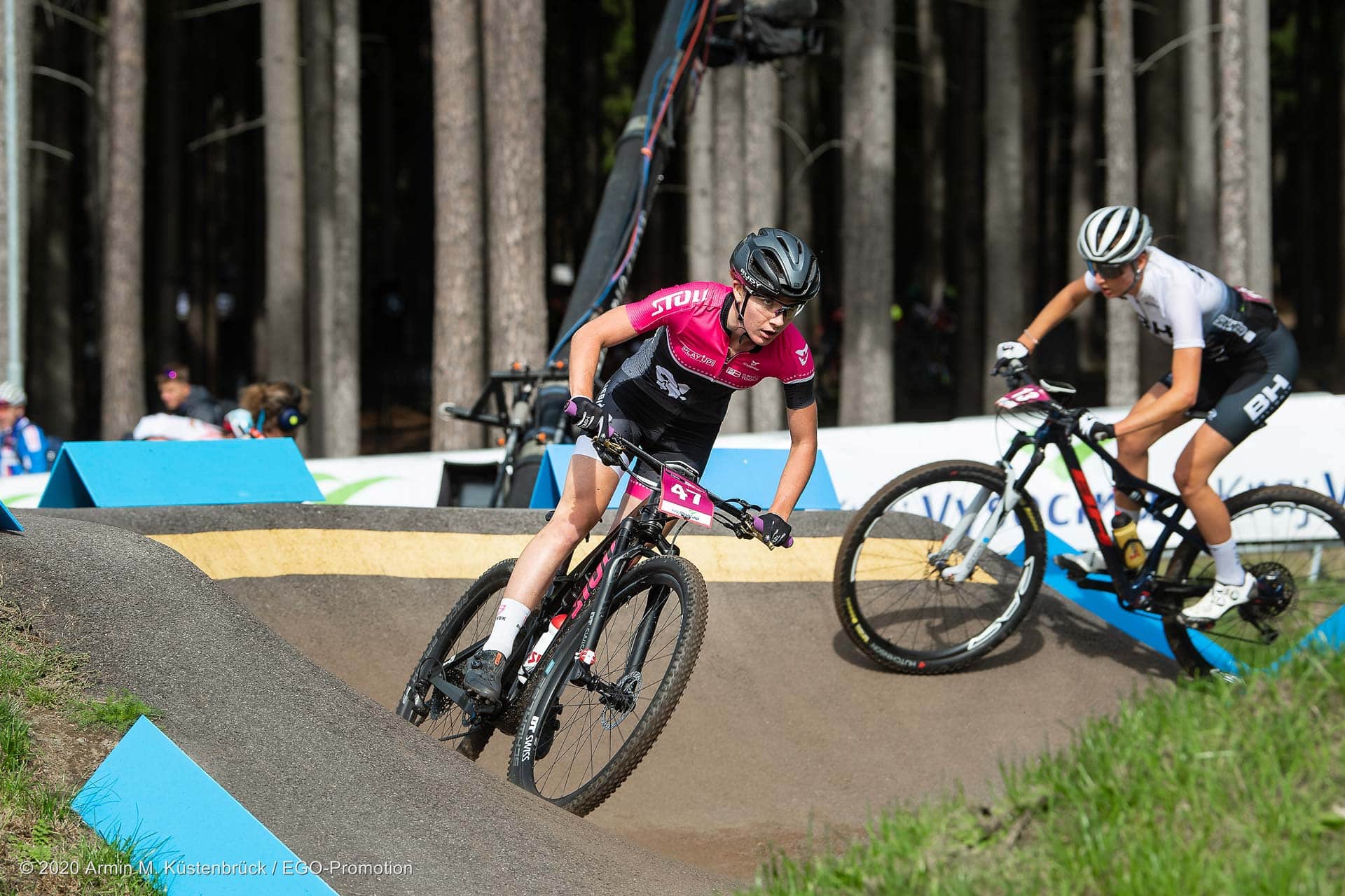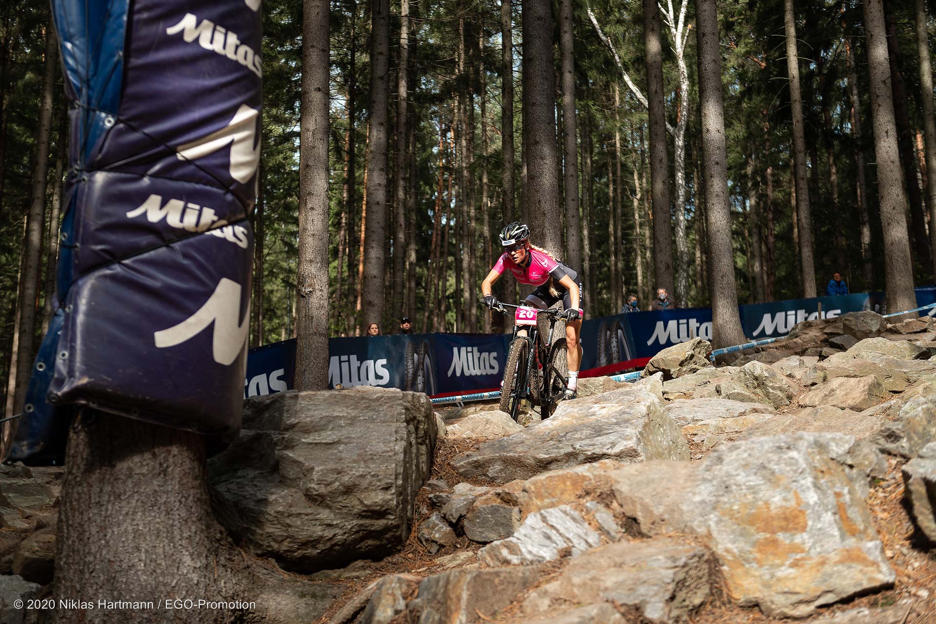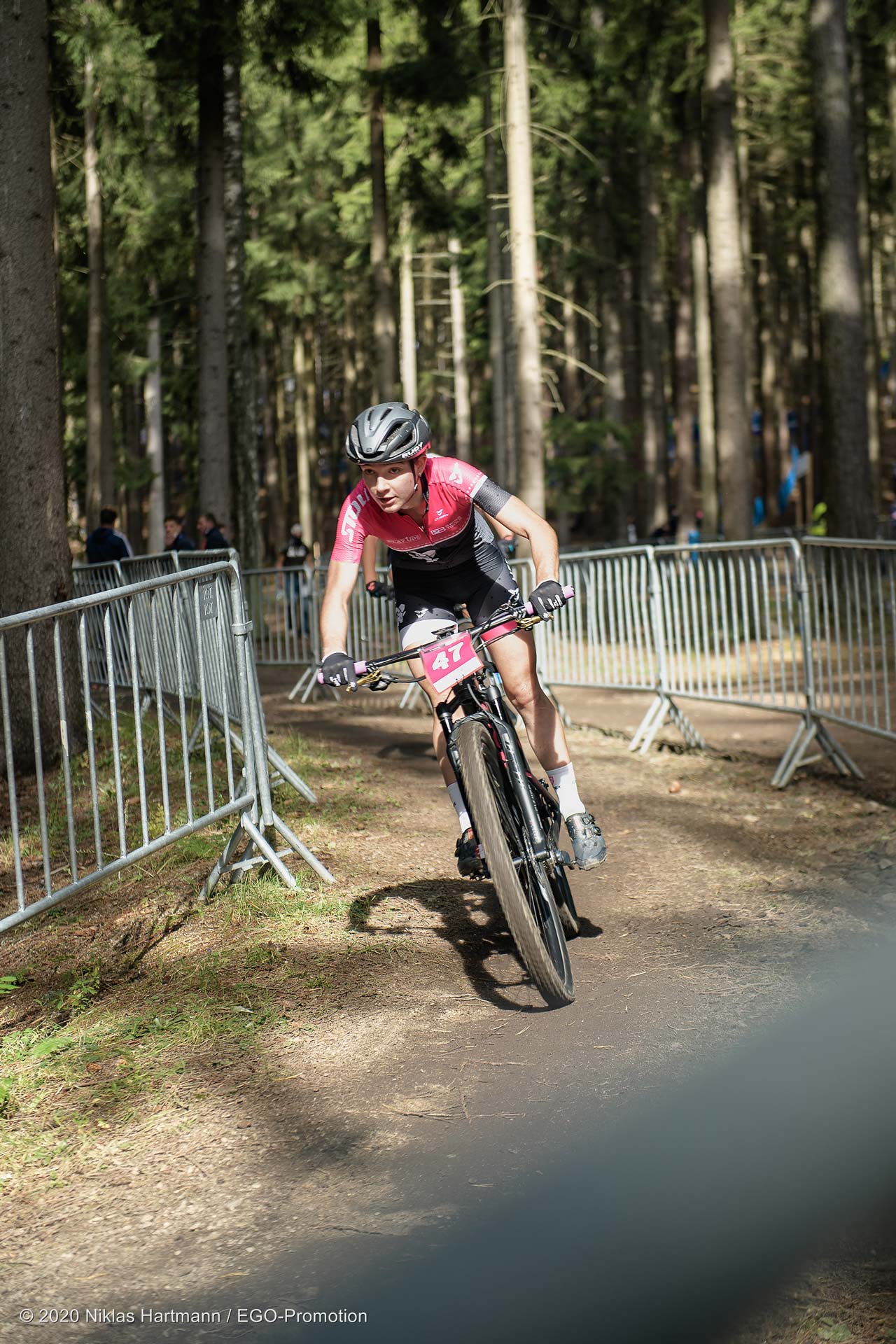 Der 38. Platz am Donnerstag war für Ramona Kupferschmied schwierig zu verstehen. Nach vorne schauen war das Motto. Sie war für den zweiten Lauf guter Dinge und top motiviert. Ging es doch immer noch um die EM-Qualifikation im eigenen Land. Leider sollten Ramona und die Strecke in Nové Mêsto auch beim x-ten Zusammentreffen, keine Liebesbeziehung werden. Im Gegenteil! Nach einer guten Startrunde bremste in einer technischen Passage eine Fahrerin vor Ramona brüsk. Ramona kam zu Fall. Der Lenker verdrehte sich dabei um ca. 45° und eine Viertelrunde später musste sie die Techzone aufsuchen. Kam dazu, dass sich der Schalttrigger löste und die Befestigungsschelle der Bremse defekt war. Erneutes Aufsuchen der Techzone. Später noch ein drittes Mal um die Bremse mit Klebeband fixieren zu lassen. Zwischendurch liess sie ihre Freude und ihr Talent in den technischen Aufstiegen und Abfahrten aufblitzen. Das sah man als Beobachter deutlich. Schade für den grossen Aufwand und der ausbleibende Lohn. «Kopf hoch!».