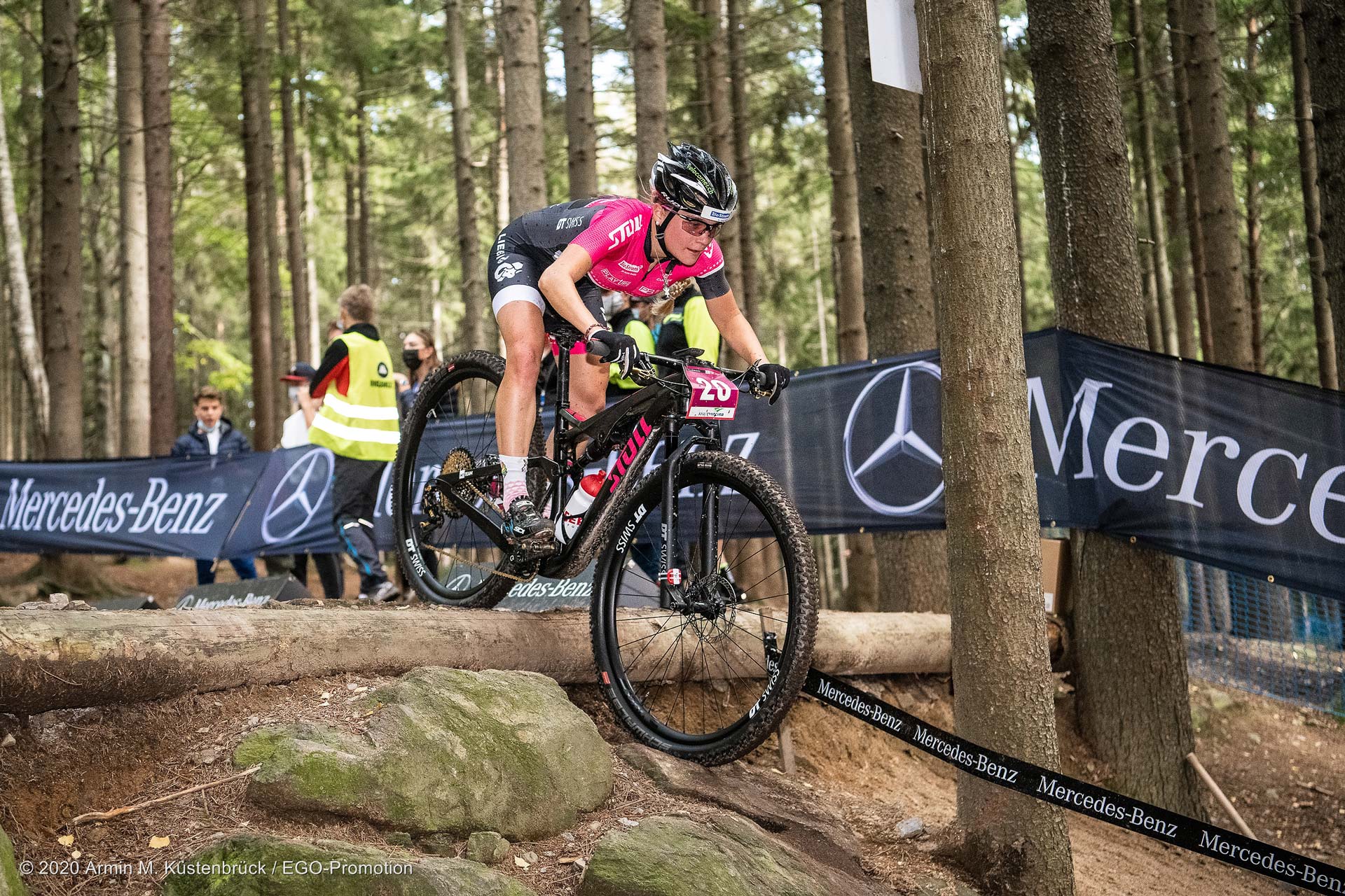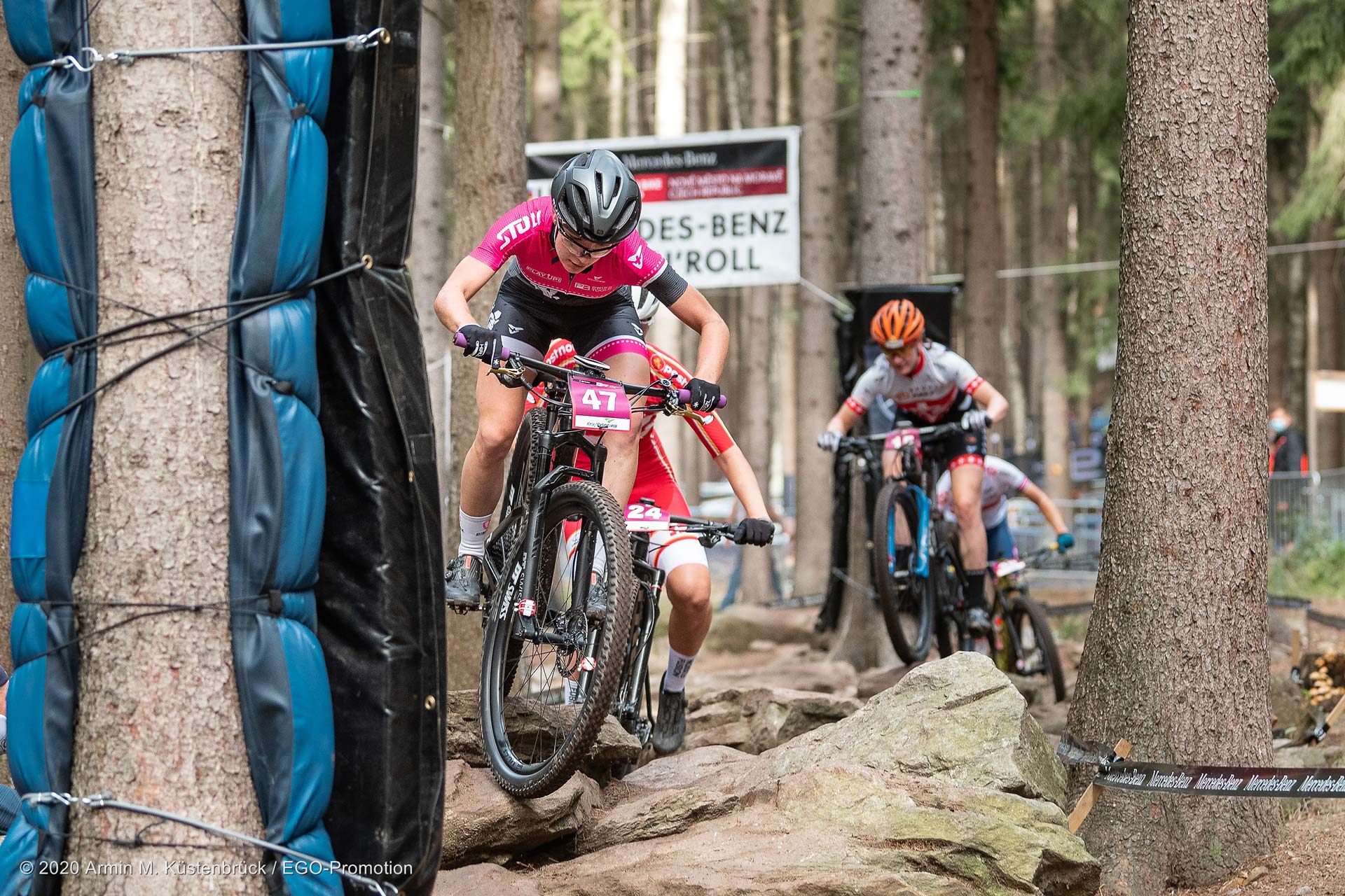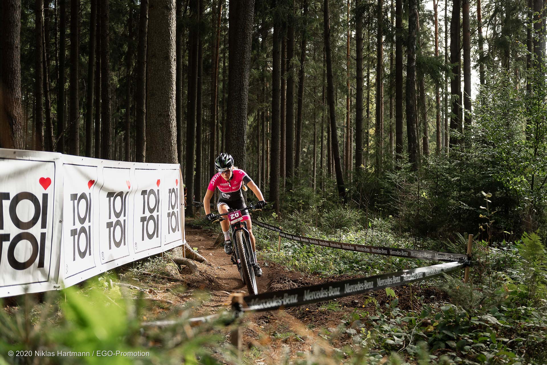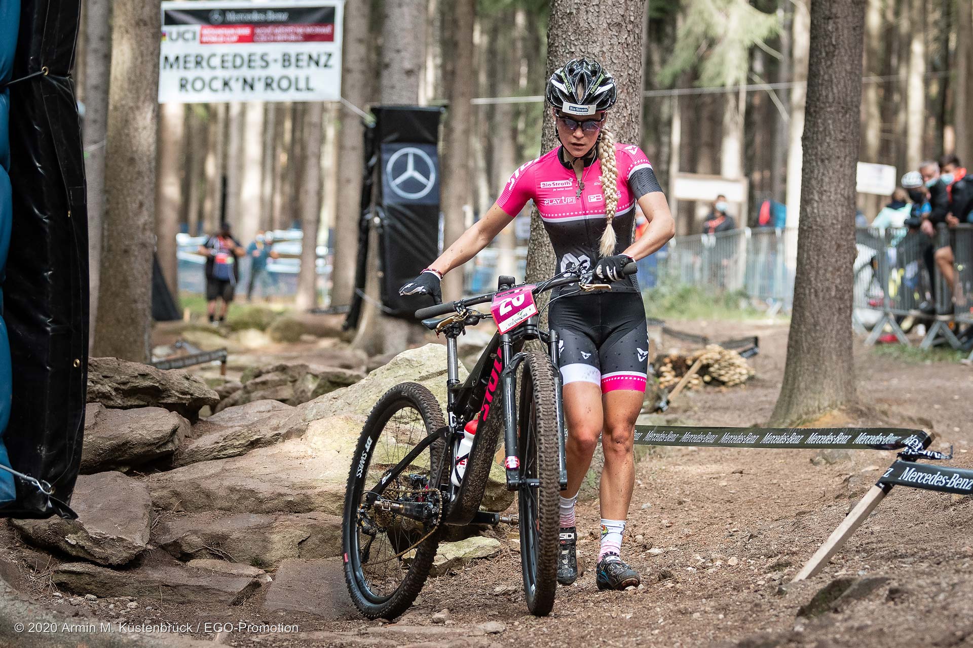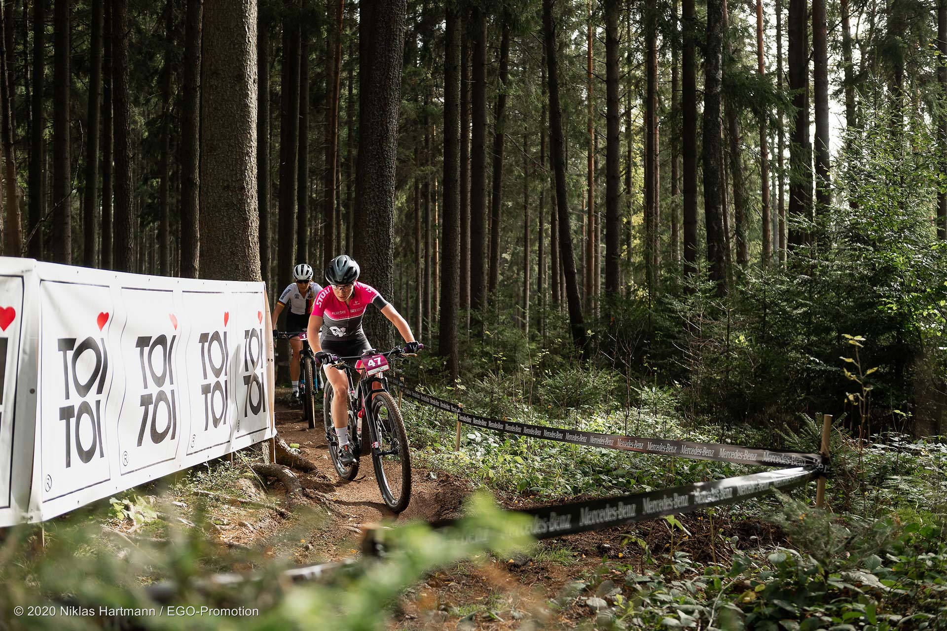 Der 38. Platz am Donnerstag war für Ramona Kupferschmied schwierig zu verstehen. Nach vorne schauen war das Motto. Sie war für den zweiten Lauf guter Dinge und top motiviert. Ging es doch immer noch um die EM-Qualifikation im eigenen Land. Leider sollten Ramona und die Strecke in Nové Mêsto auch beim x-ten Zusammentreffen, keine Liebesbeziehung werden. Im Gegenteil! Nach einer guten Startrunde bremste in einer technischen Passage eine Fahrerin vor Ramona brüsk. Ramona kam zu Fall. Der Lenker verdrehte sich dabei um ca. 45° und eine Viertelrunde später musste sie die Techzone aufsuchen. Kam dazu, dass sich der Schalttrigger löste und die Befestigungsschelle der Bremse defekt war. Erneutes Aufsuchen der Techzone. Später noch ein drittes Mal um die Bremse mit Klebeband fixieren zu lassen. Zwischendurch liess sie ihre Freude und ihr Talent in den technischen Aufstiegen und Abfahrten aufblitzen. Das sah man als Beobachter deutlich. Schade für den grossen Aufwand und der ausbleibende Lohn. «Kopf hoch!».